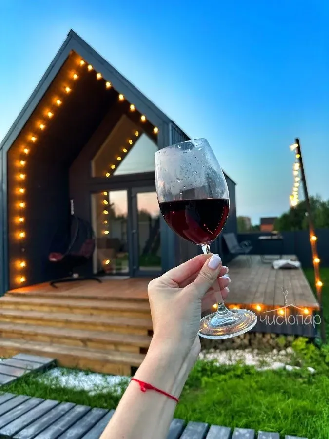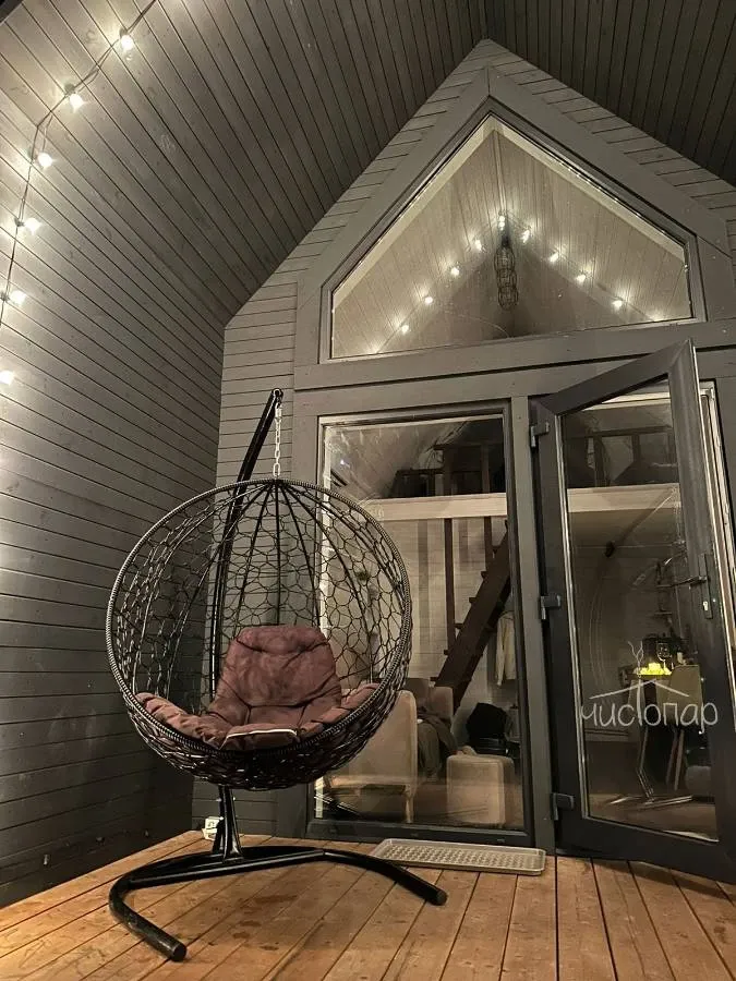 Домик для 2-6 человек с панорамным окном, террасой и личной зоной отдыха.