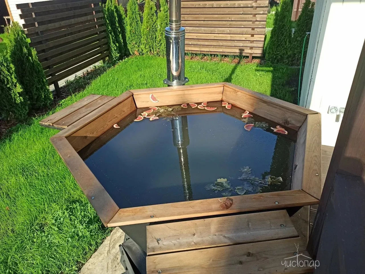 Собственный банный чан с подогреваемой водой.