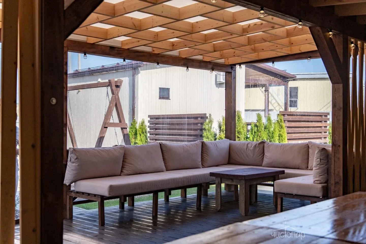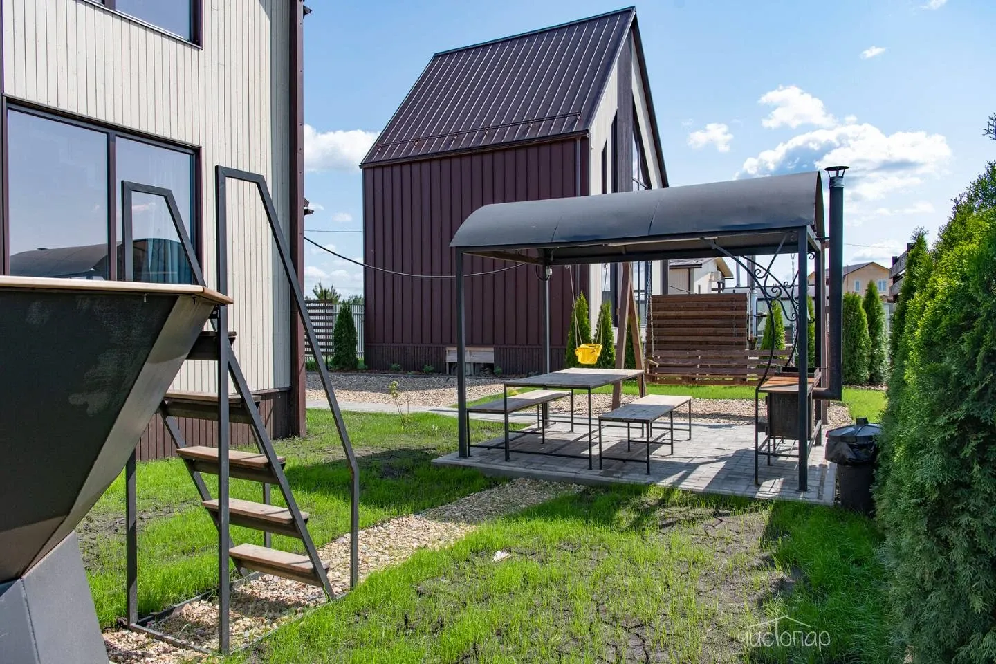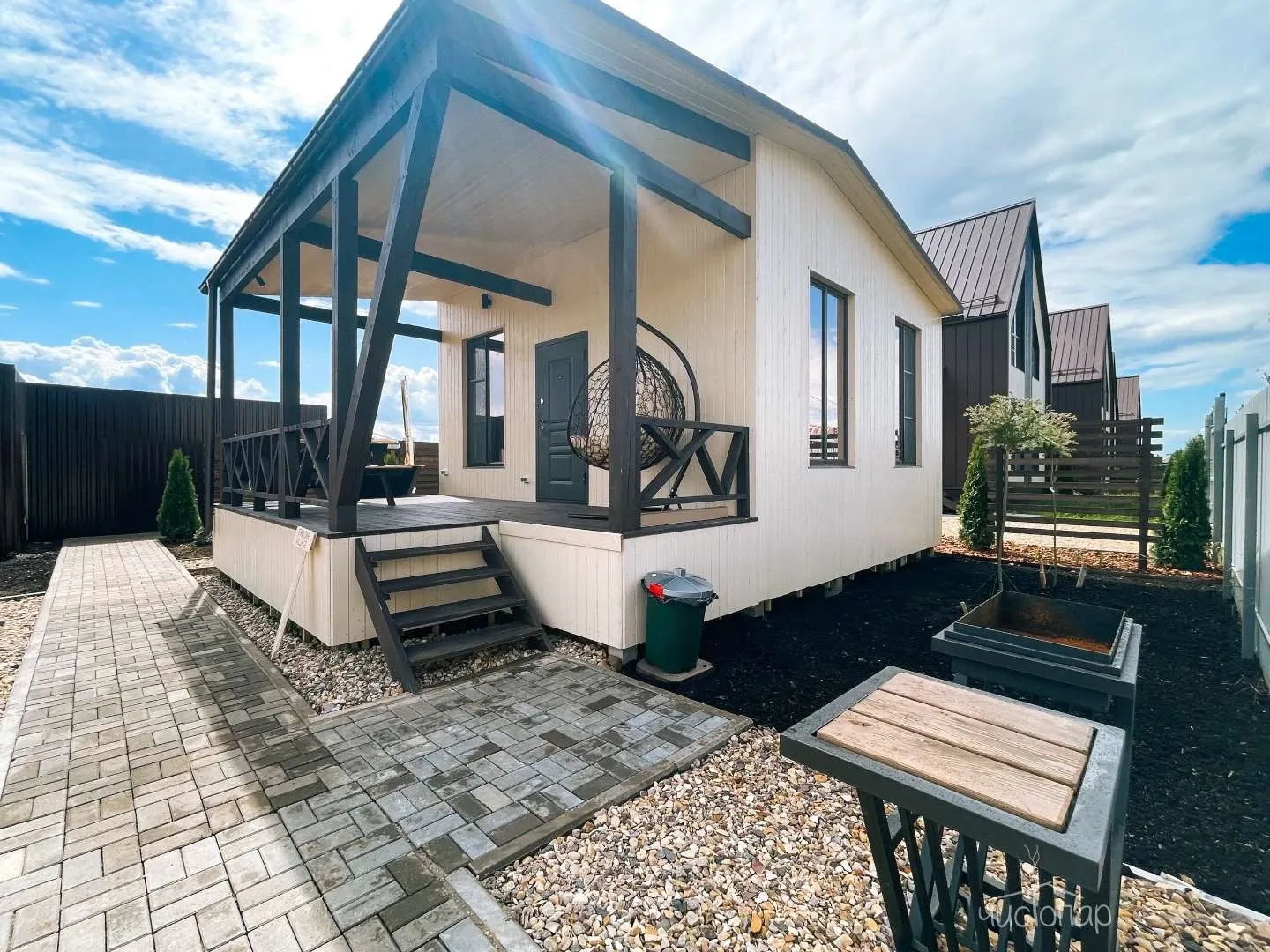 Территория каждого дома оснащена всем необходимым для полноценного отдыха.