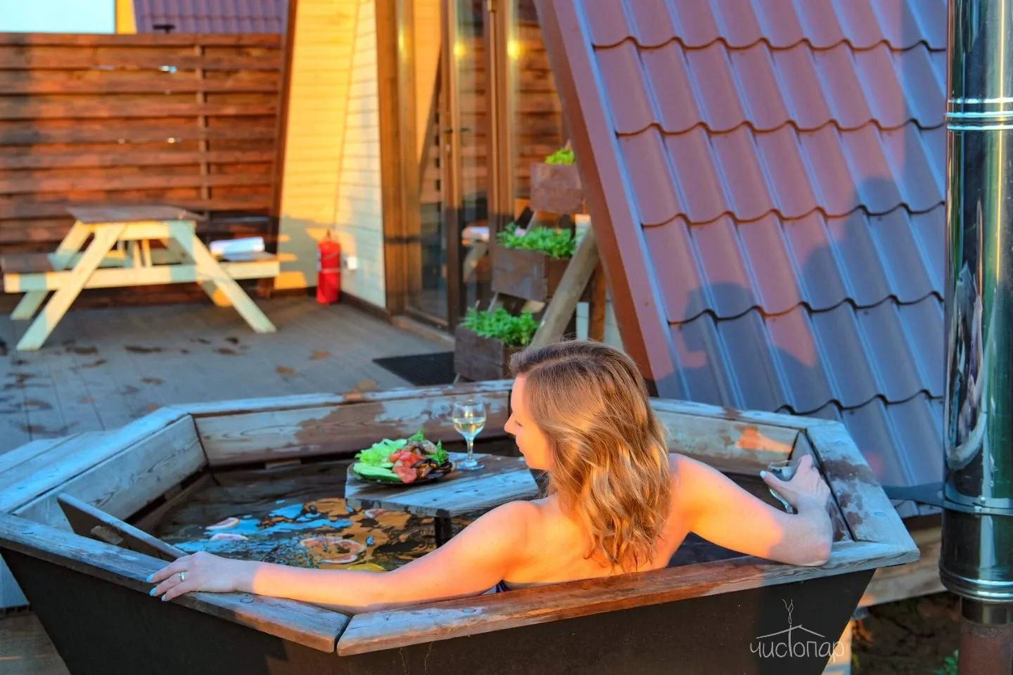 - Расслабиться в банном чане на свежем воздухе