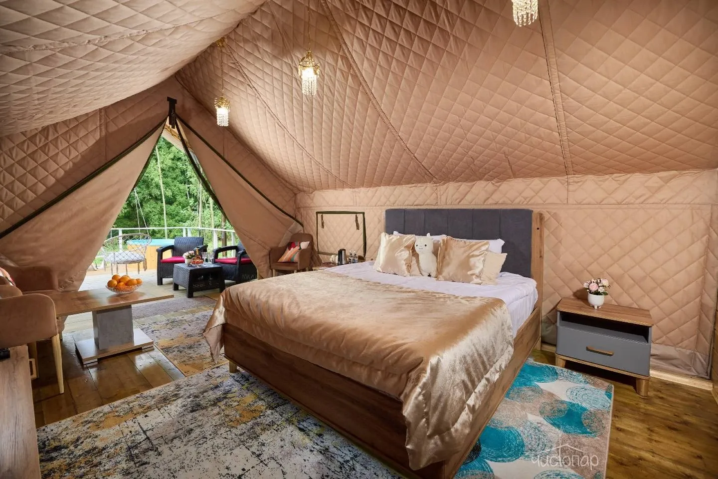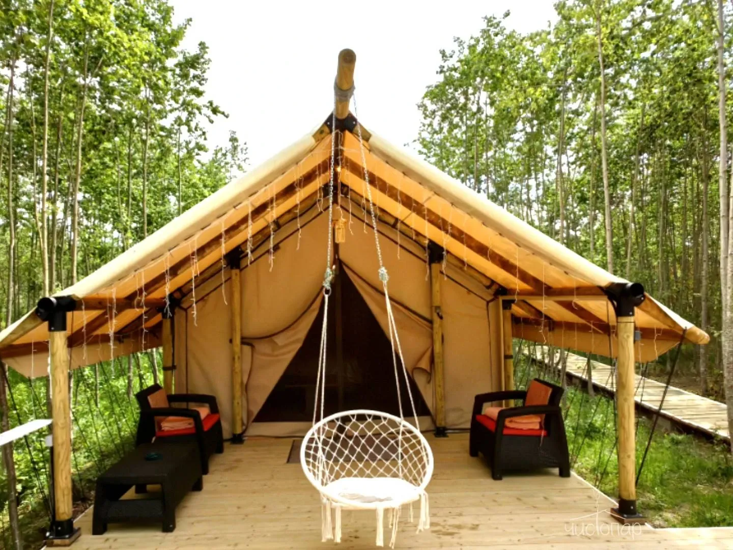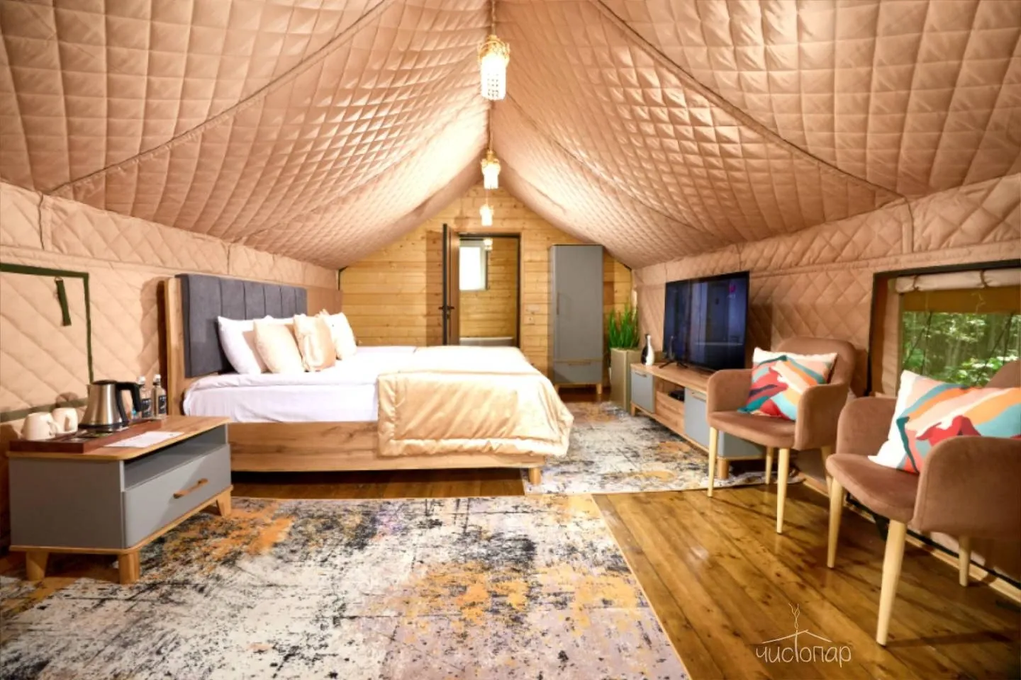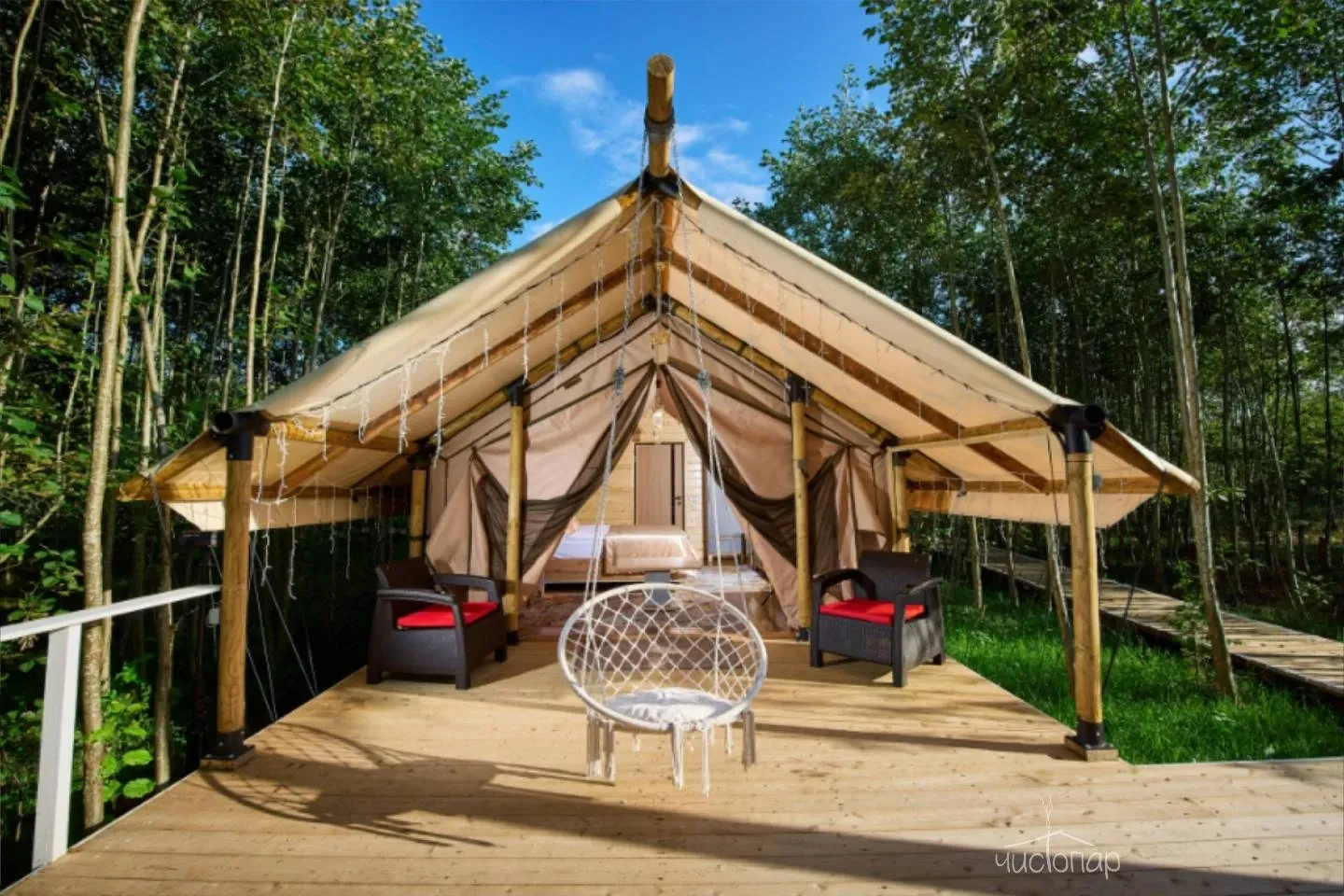 Глэмпинг относится к направлениям экотуризма и включает в себя организованный и комфортный отдых для взрослых гостей на лоне природы с лёгкими элементами загородного отеля.