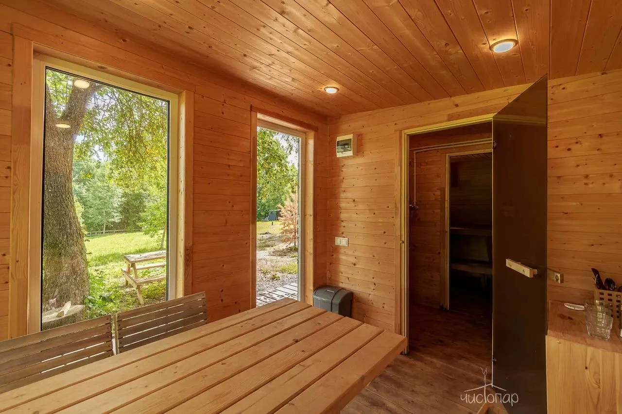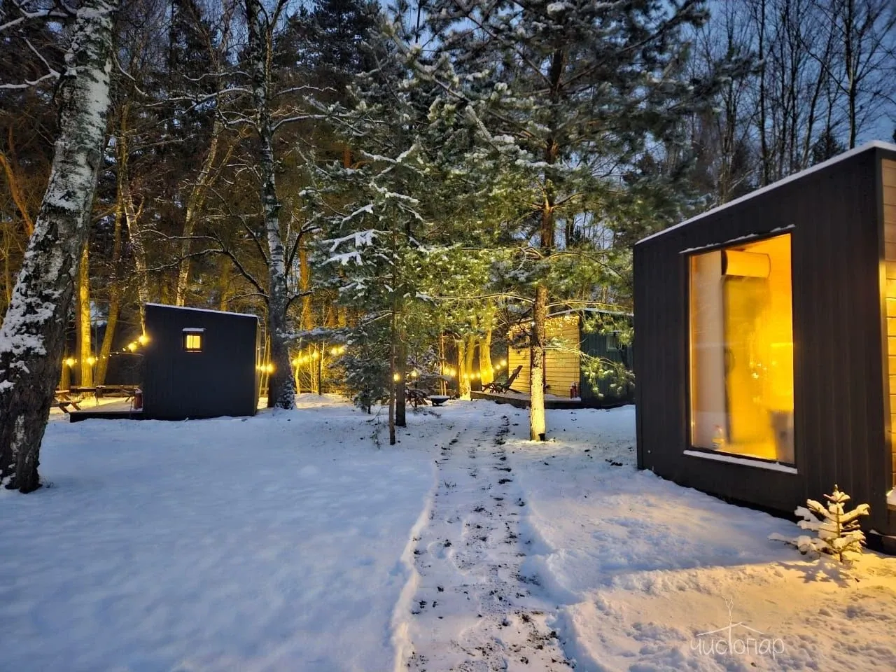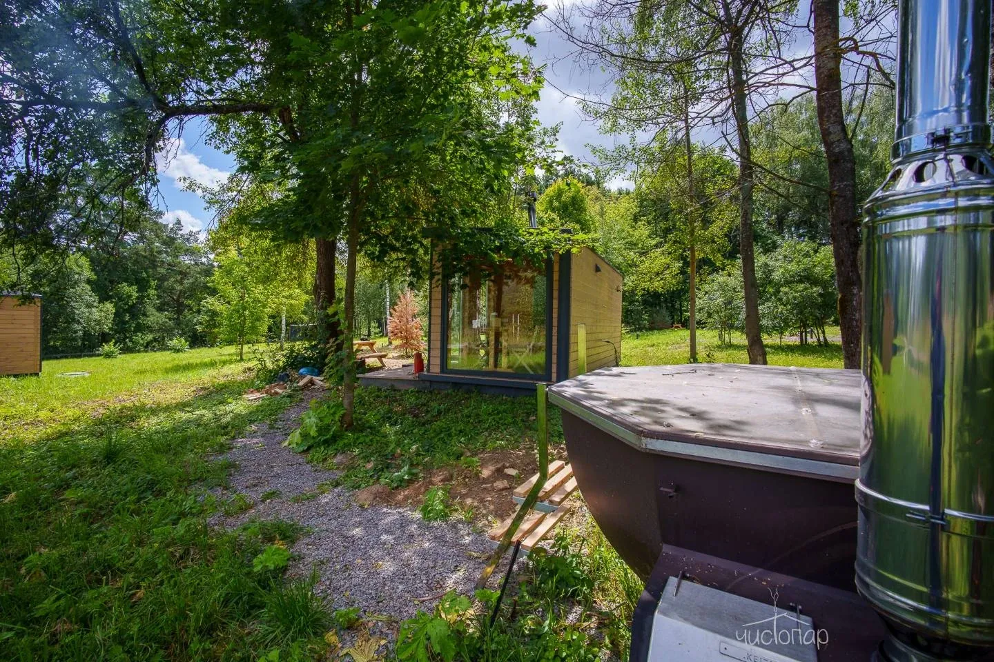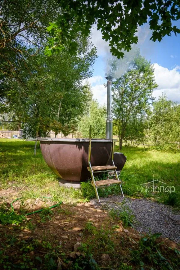 На территории глэмпинга есть большие и малые домики, бани, большой уличный чан-купель. возможность принять участие в сплаве на байдарках.
