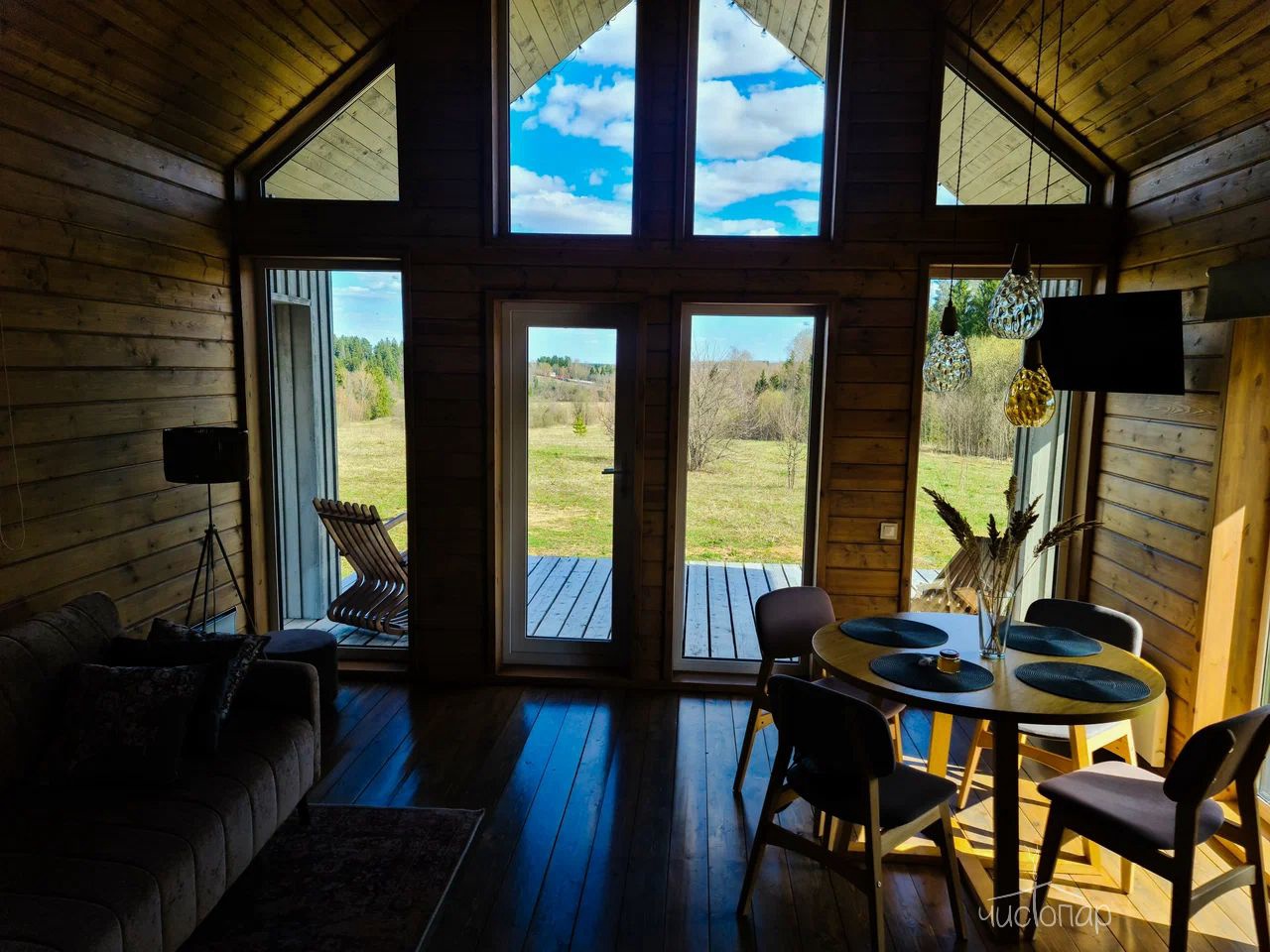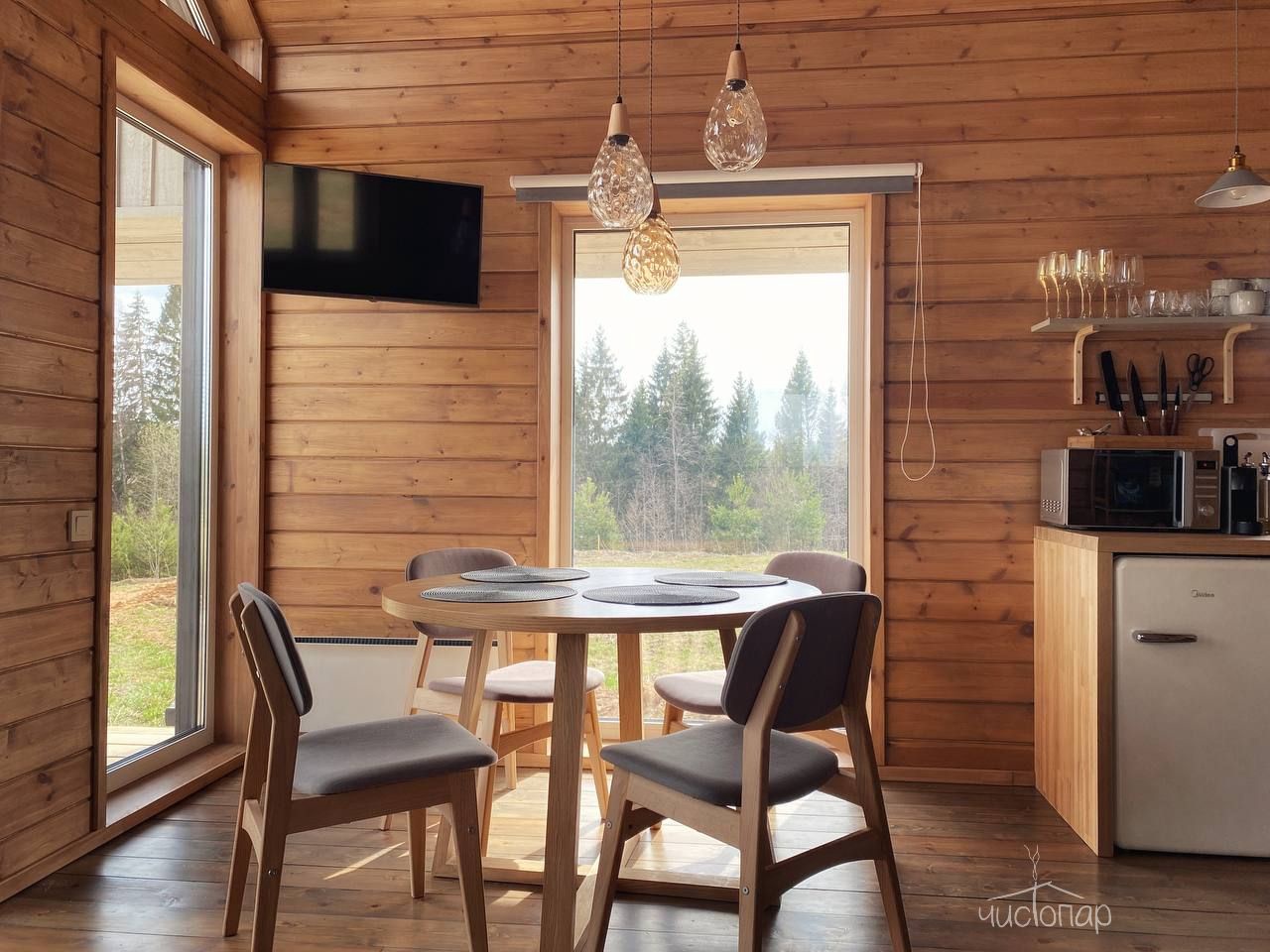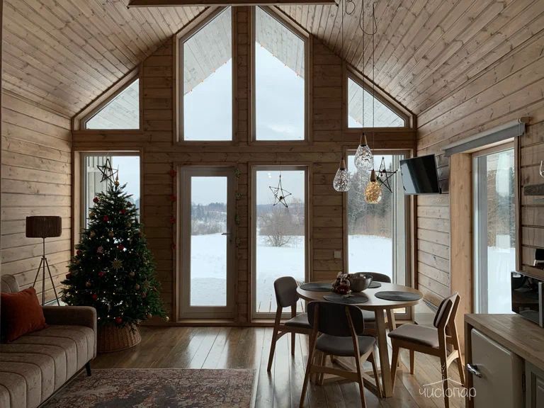 Выезд до 13:00 в коттеджах Сканди и Бисквит и до 15.00 в коттеджах Брусника и Черника.