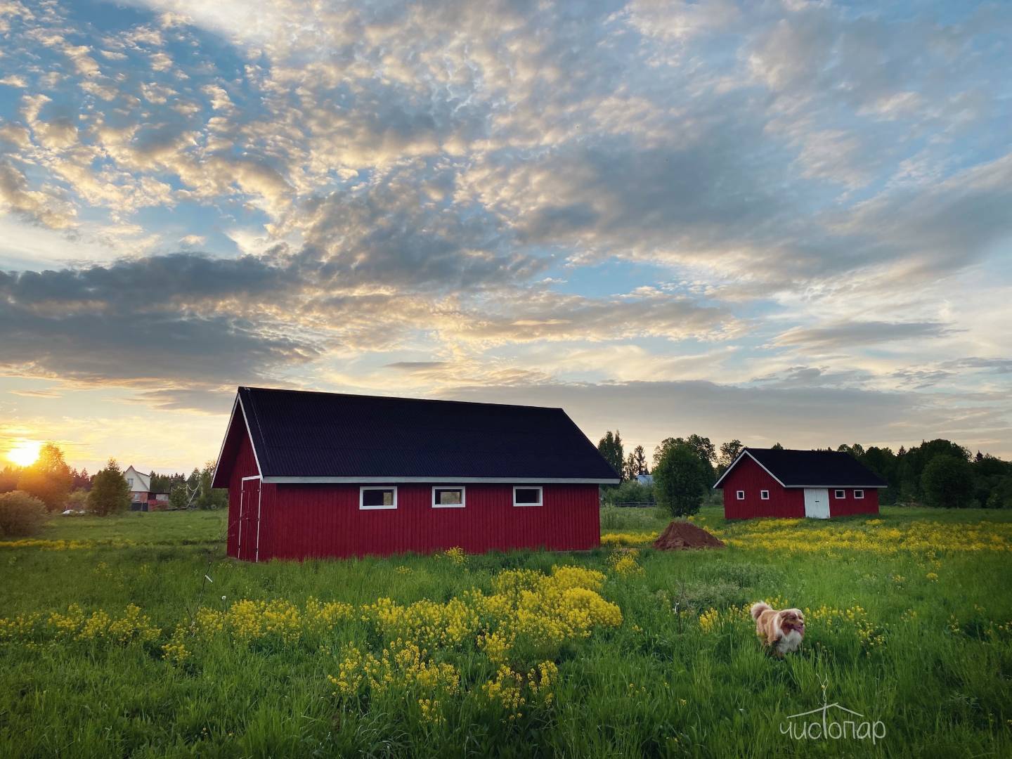 Около каждого дома есть парковочное место. Территория фермы огорожена частично.
