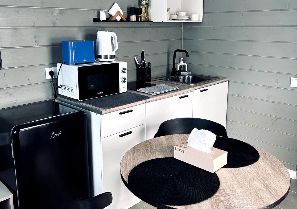 - Проживание в уютных домиках, оснащенных всем необходимым
