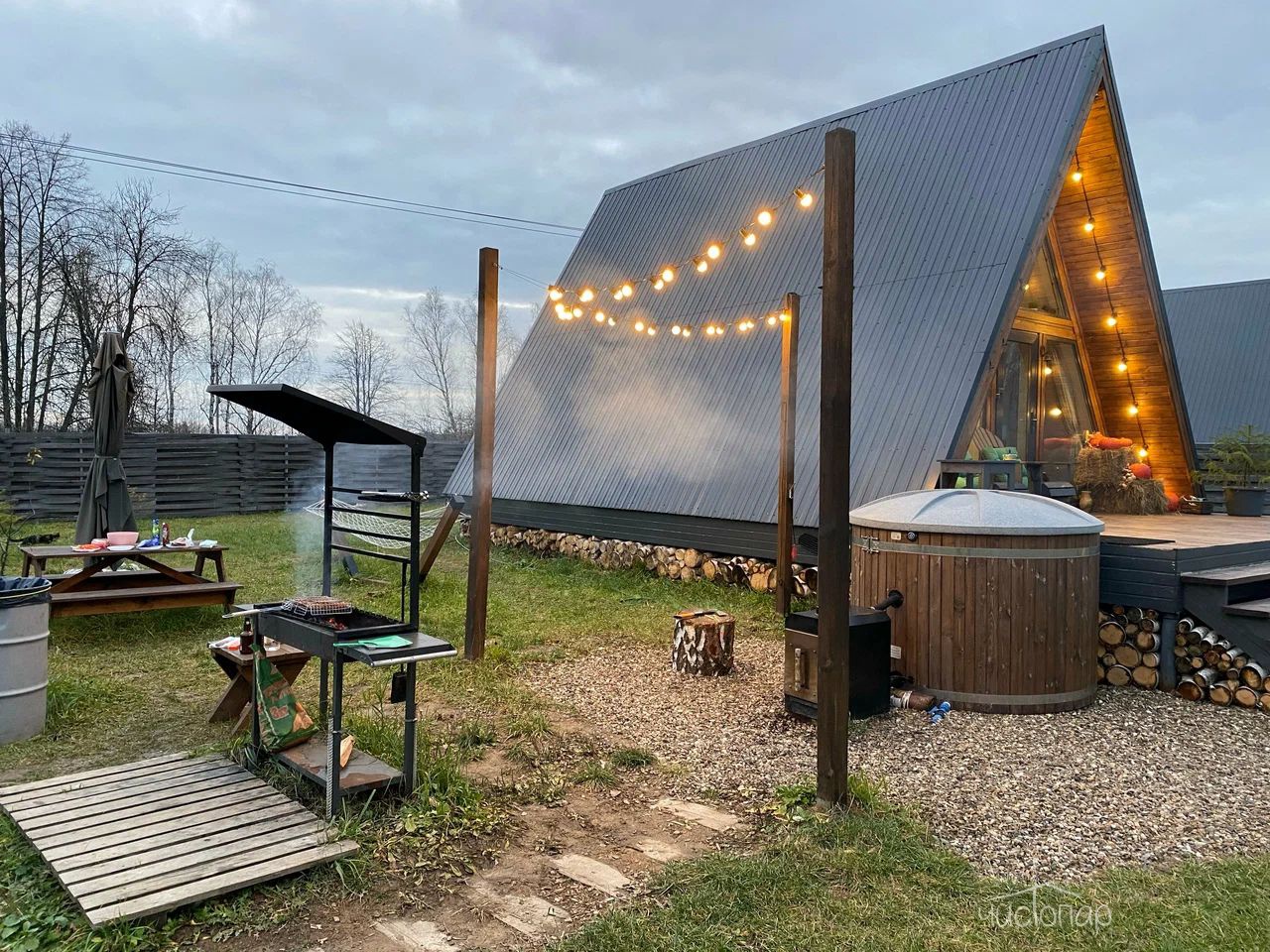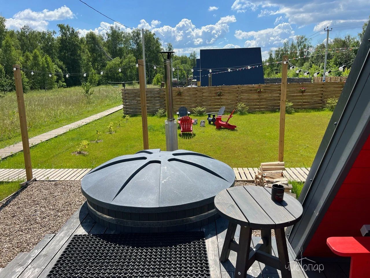 - Вы можете устроить барбекю возле дома, арендовать фурако, посидеть у костра в роскошных креслах адирондак, поспать в гамаке.
