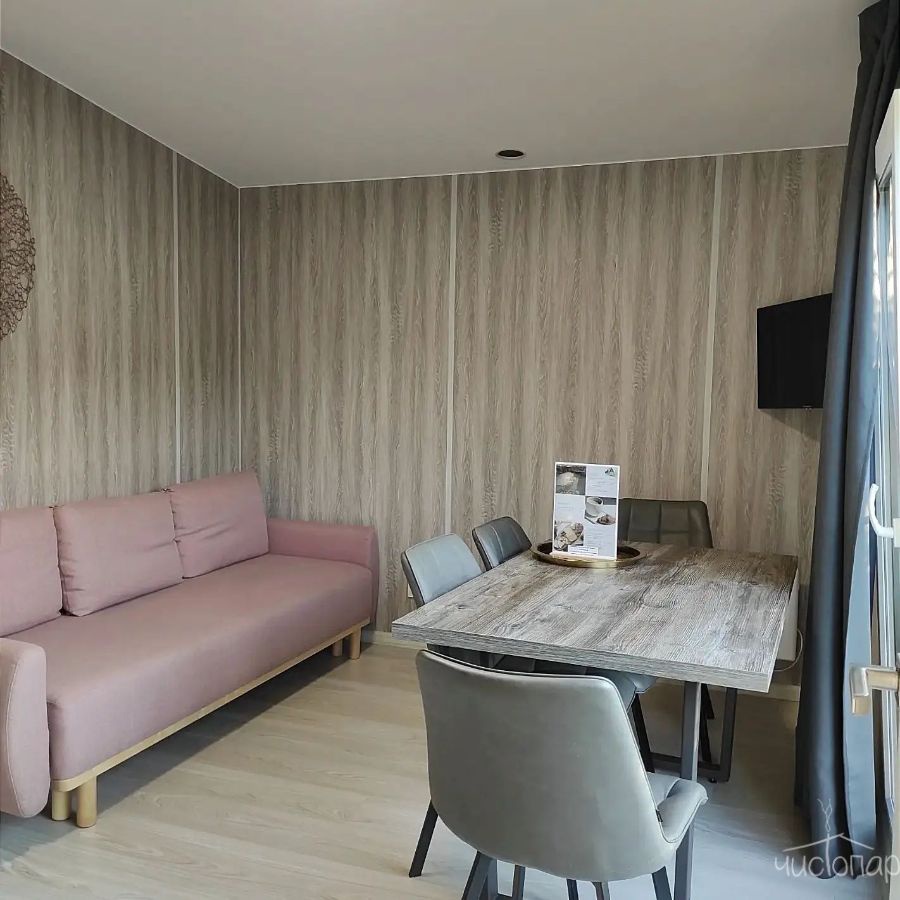 Мягкая мебель (кровать и диван) для размещения 2-4 человек в одном домике