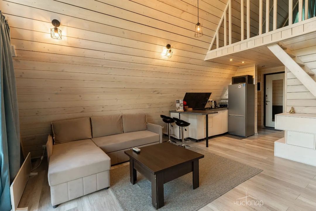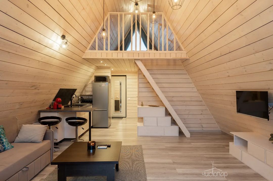 • 8 уютных эко-домиков, оснащенных всеми удобствами для семейного отдыха
