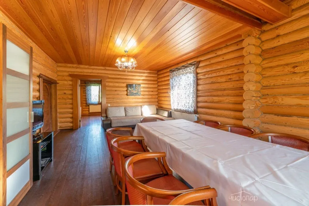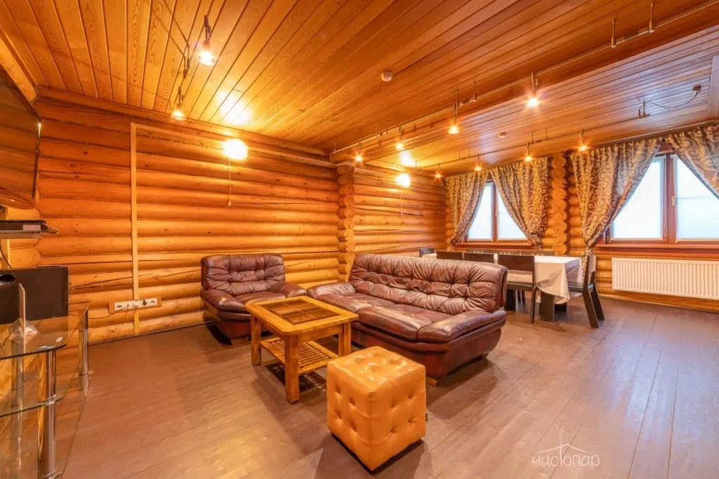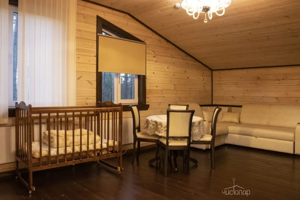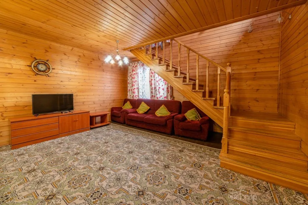 Современный 2-х этажный коттедж с русской баней и бассейном. Оснащен всем необходимым оборудованием и мебелью для комфортного загородного отдыха семьей или компанией: 1-ой гостиной комнатой с обеденным столом на 8 человек, 3-мя спальными комнатами с двухместными кроватями, 2-мя туалетными комнатами, 2-мя душевыми кабинами при бане, русской баней на дровах, купелью, зоной для барбекю, 1-им ТВ.