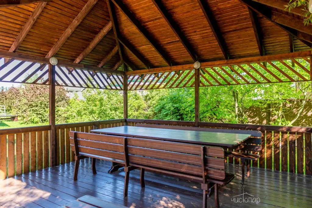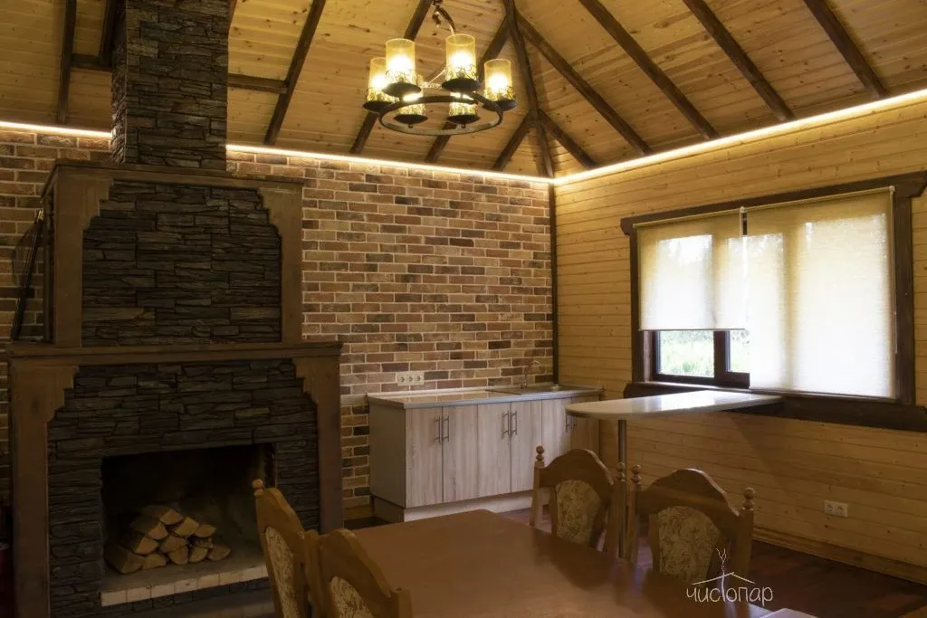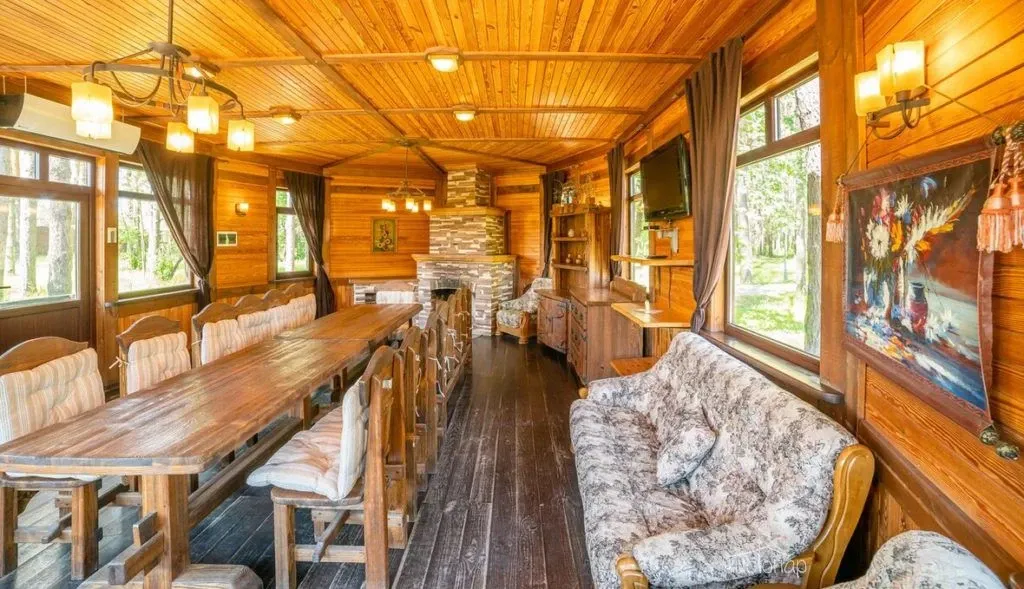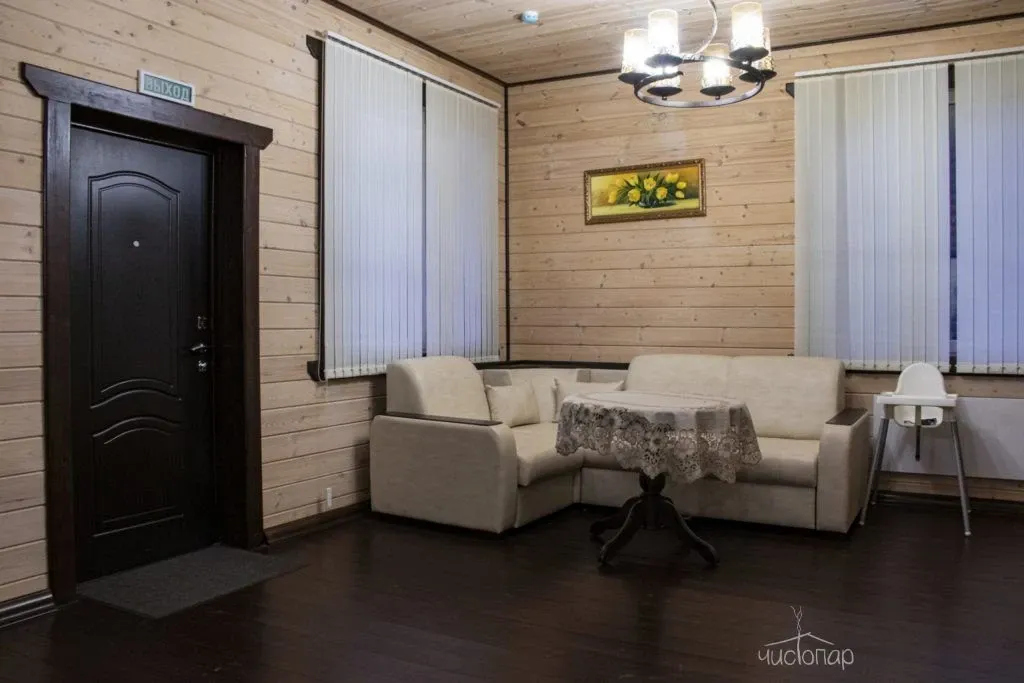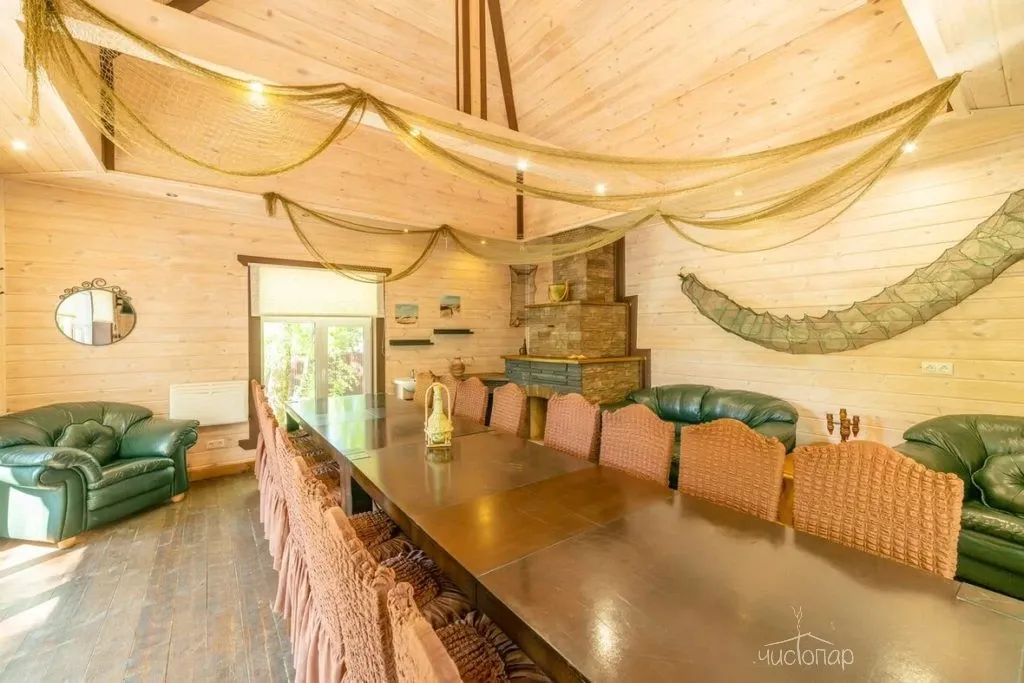 Современный 2-х этажный коттедж с русской баней и бассейном. Оснащен всем необходимым оборудованием и мебелью для комфортного загородного отдыха семьей или компанией: 1-ой гостиной комнатой с обеденным столом на 8 человек, 3-мя спальными комнатами с двухместными кроватями, 2-мя туалетными комнатами, 2-мя душевыми кабинами при бане, русской баней на дровах, купелью, зоной для барбекю, 1-им ТВ.