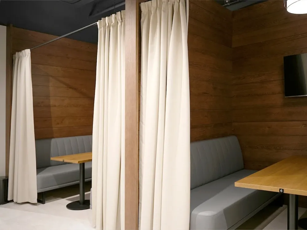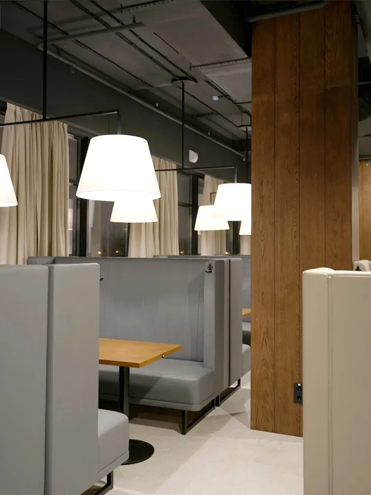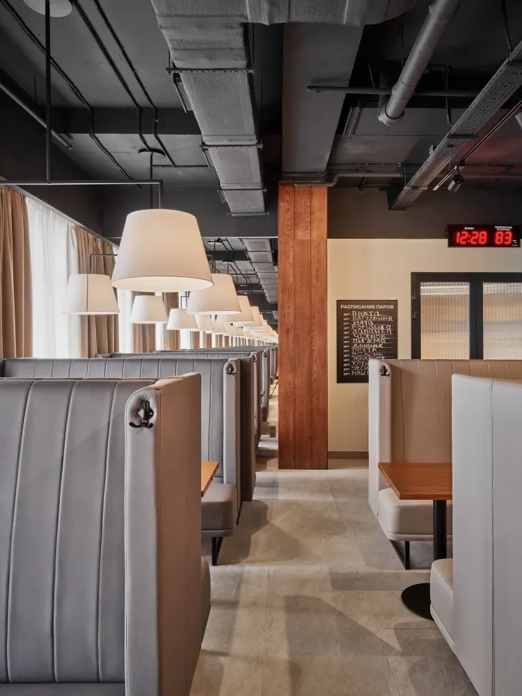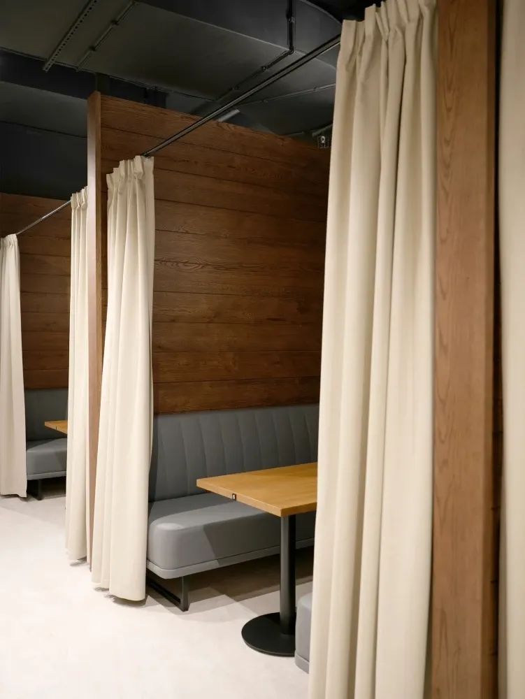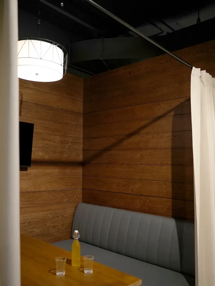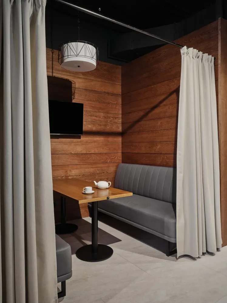 У нас вы сможете выбрать идеальное пространство для отдыха: общий зал с комфортабельными местами для встреч и общения, шторочные кабины для более приватной обстановки в общем зале и VIP-кабинеты с уникальным дизайном.