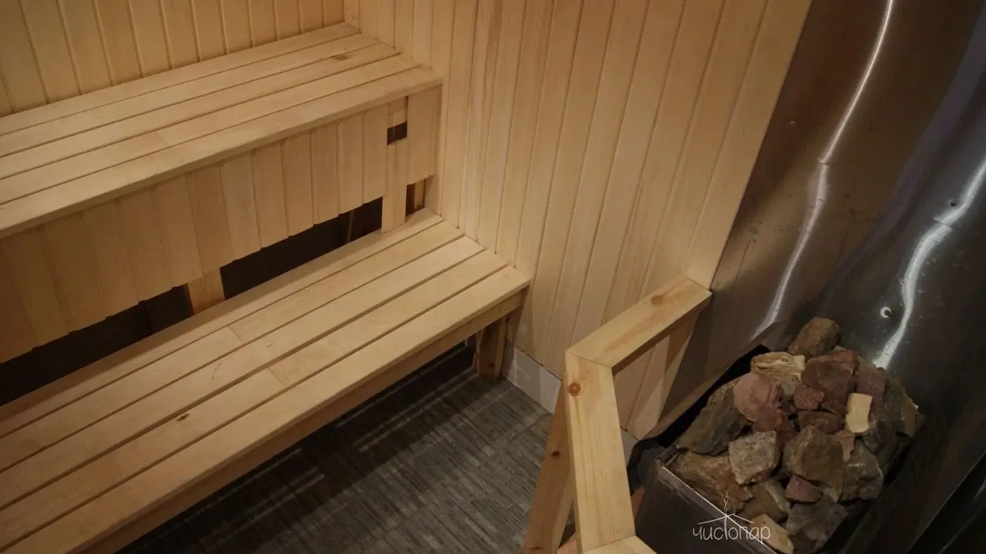 Сауна №9В сауне № 9 (2-х местный): комната отдыха, душ, парилка, TV.