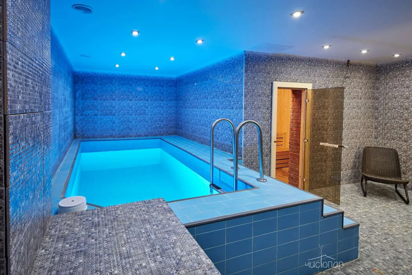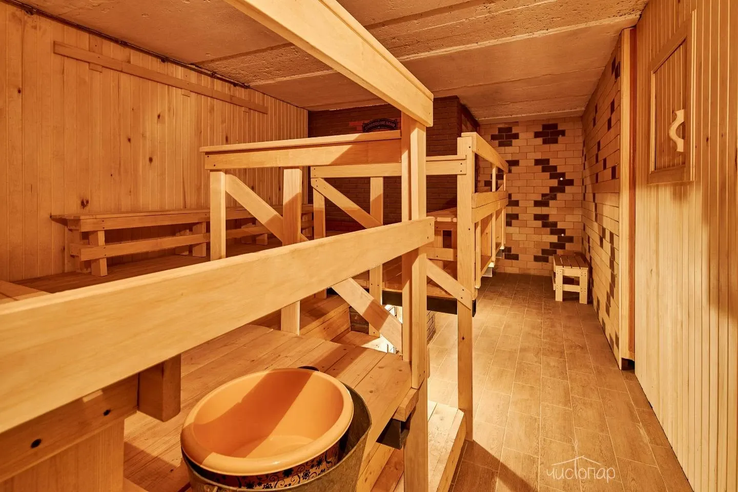 РоссияПредлагаем Вам новую сауну , вместимостью до 12 гостей . Сауна располагает всем необходимым для комфортного отдыха как компаний , так и для уединения влюбленных : парной с профессиональной электро-каменкой , купелью с ледяной водой , джакузи с гидромассажем , комнатой отдыха , TV, WI-FI и лаунж зоной для проведения торжеств .