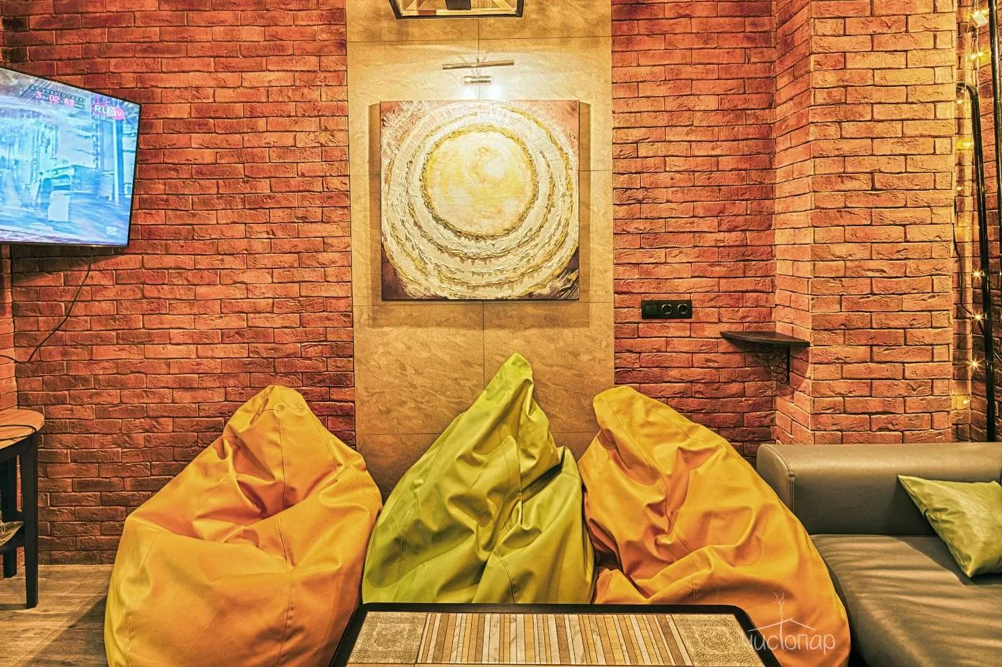 ГжельСауна в стиле гжель с русским бильярдом и зоной отдыха на 8 человек. У нас работает ресторан, где вы можете заказать любые блюда, разливное пиво и крепкий алкоголь.