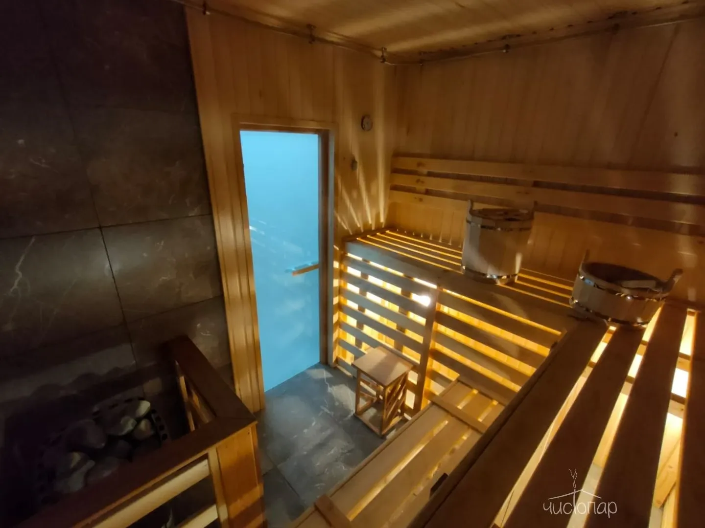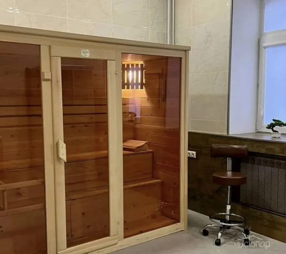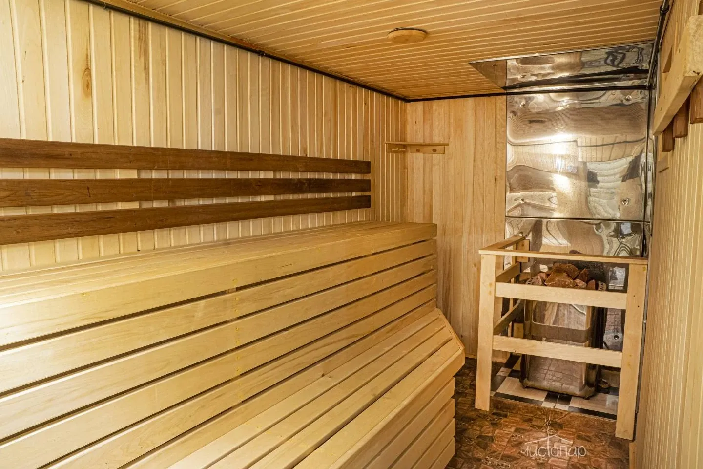 Хай-текНовая сауна в европейском стиле , с новой и свежей финской парной, купелью, комнатой отдыха со столом для 6 гостей, ТВ , эл. чайник, подвесное кресло-качалка, кондиционер, душ, санузел.