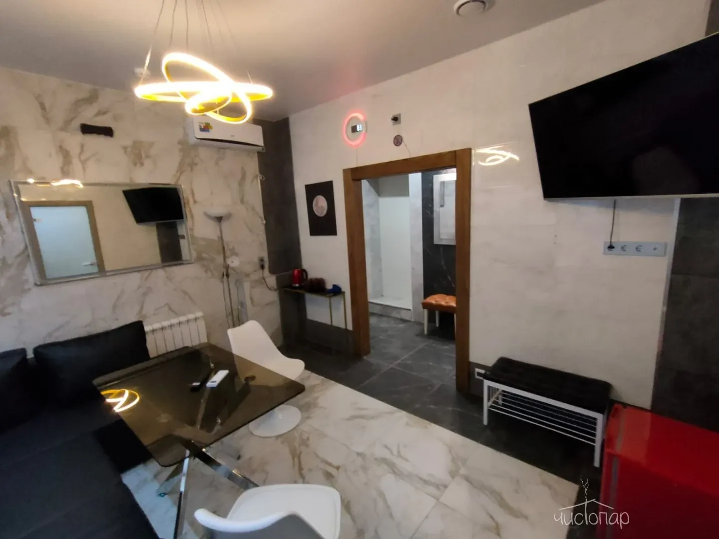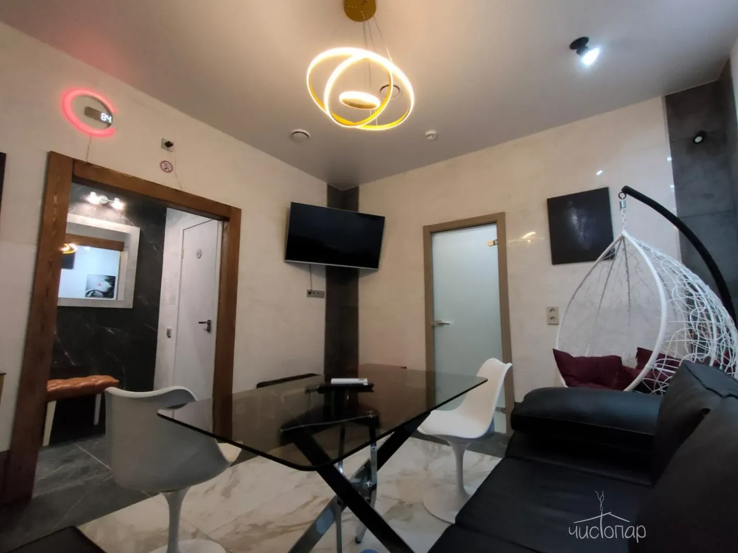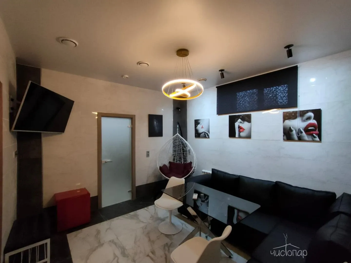 Хай-текНовая сауна в европейском стиле , с новой и свежей финской парной, купелью, комнатой отдыха со столом для 6 гостей, ТВ , эл. чайник, подвесное кресло-качалка, кондиционер, душ, санузел.