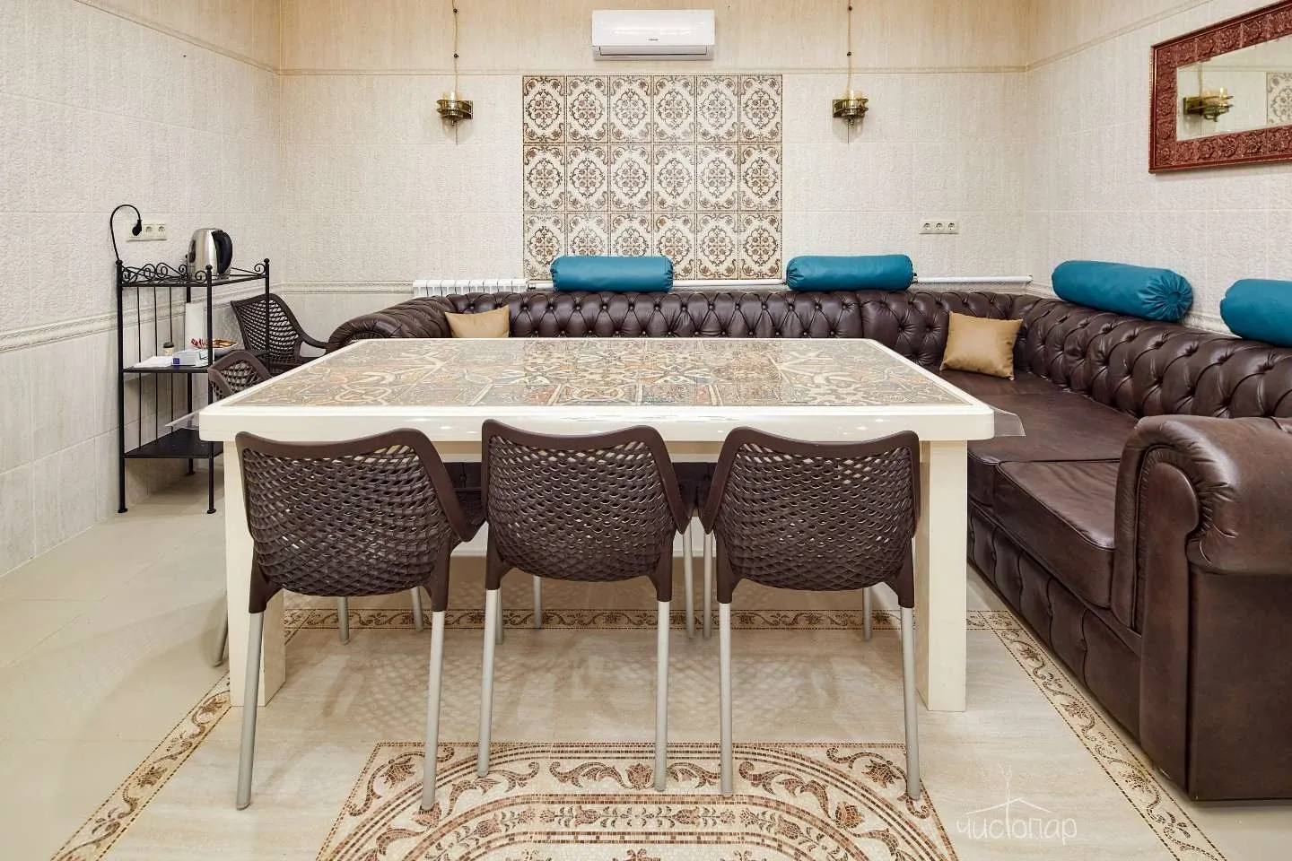 Помимо парных доступны услуги бильярда, ресторан с баром, массаж и лаунж-зона для отдыха после парения.