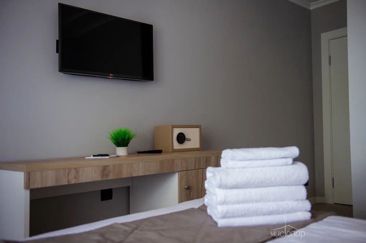 В стоимость входит: простынь, полотенце, тапочки (по запросу)