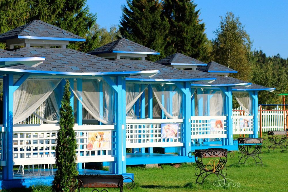 Инфраструктура парк-отеля включает в себя уютные беседки с мангалами, вмещающие от 10 до 20 человек, а также «Японские беседки» для двоих, расположенные в зелёной зоне у воды. Гости могут расслабиться в русской бане, поиграть в волейбол, мини-футбол, настольный теннис, бадминтон или бильярд. Для детей оборудована игровая площадка с песочницей, качелями и спортивными снарядами. На благоустроенном пляже с чистым речным песком предоставляются бесплатные шезлонги, теневые навесы, душевые кабинки, раздевалки, а также работают спасательный пост и медпункт. Летом доступен прокат катамаранов и лодок, а зимой — аренда саней с извозчиком.