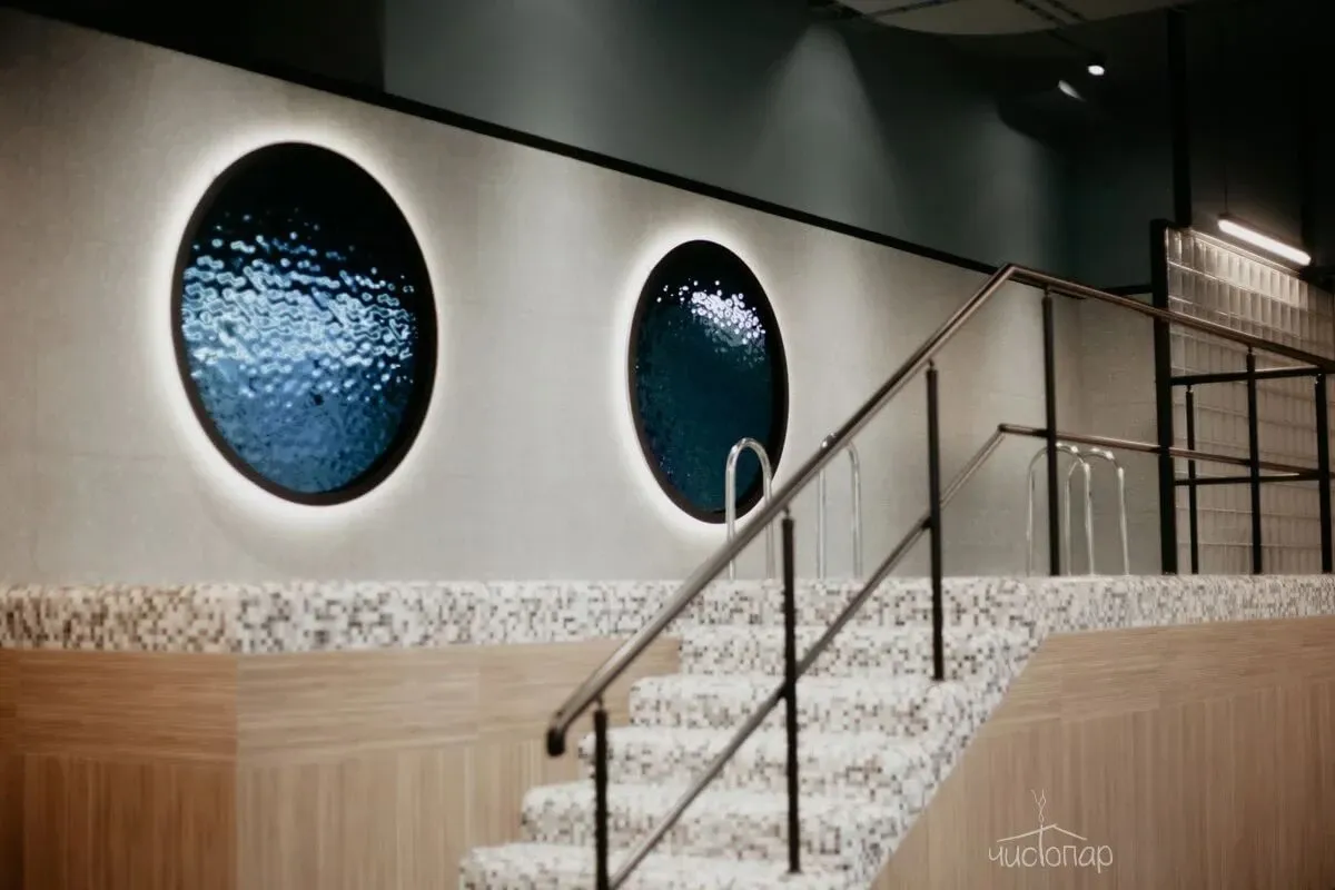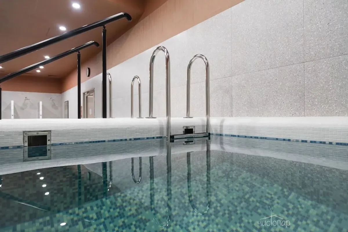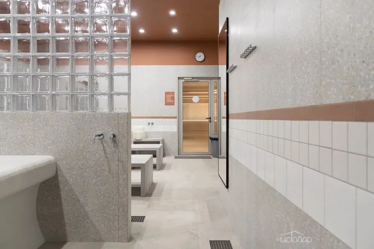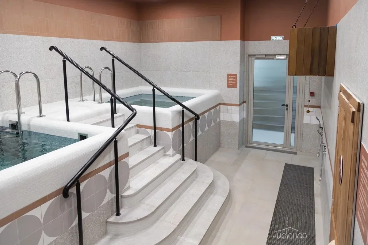 В комплексе есть Русская парная, аквазона с ледяной и теплой купелями, обливными устройствами, а также VIP-кабинки и обеденная зона.