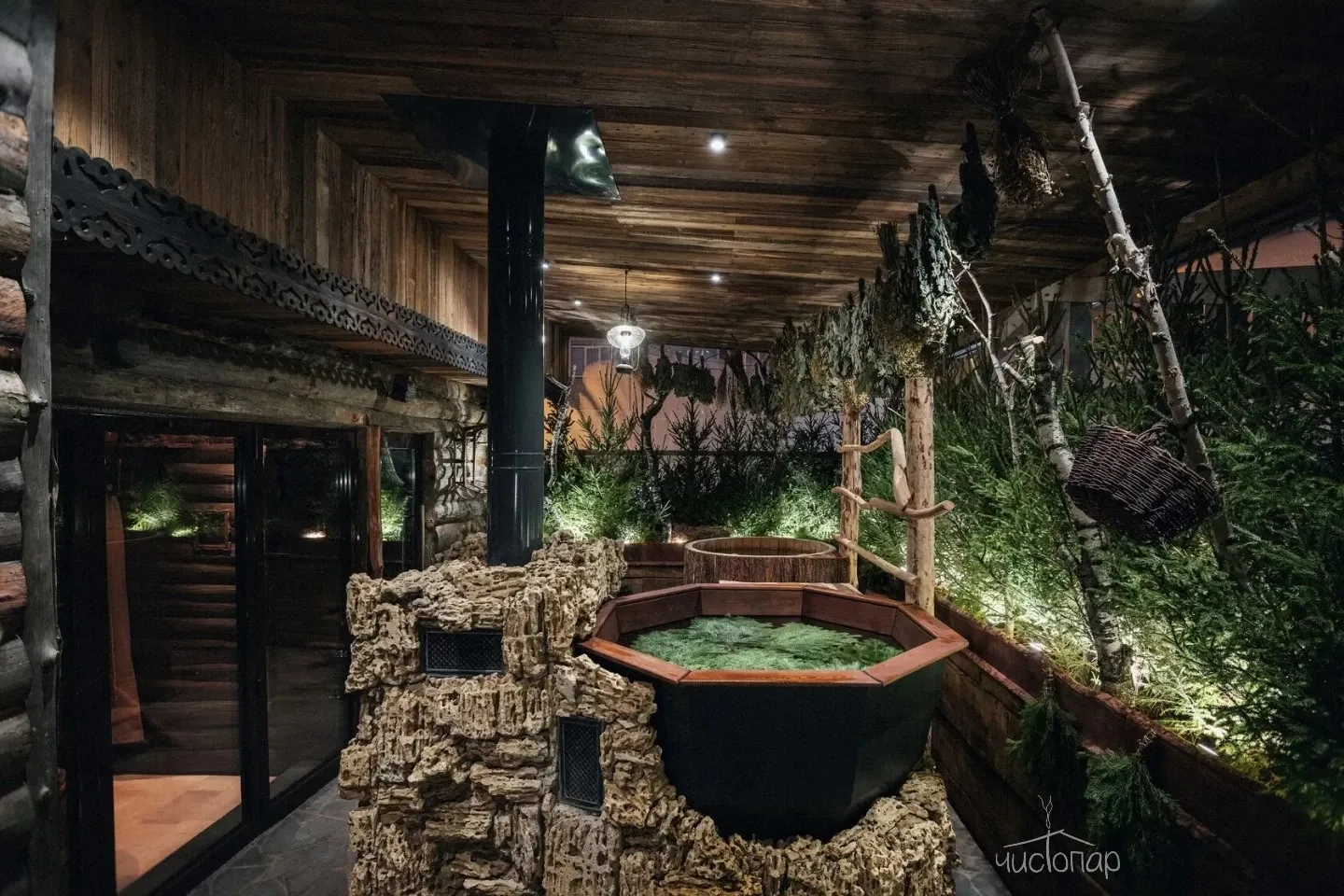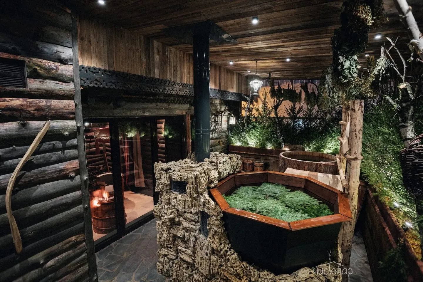 Забота — в руках профессиональных пармастеров. Дровяные бани построены по-сибирски из натуральных материалов, и в каждой парной — особые программы с травами, массажем и древней звукотерапией.