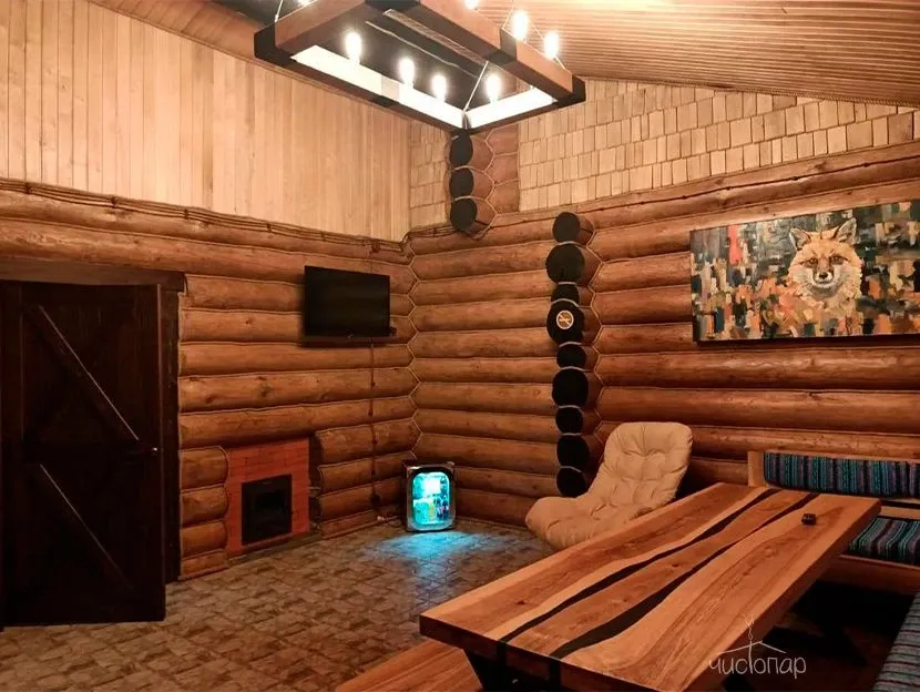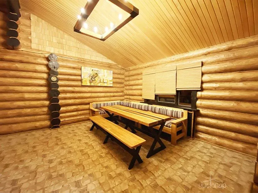 - Удобства в бане: