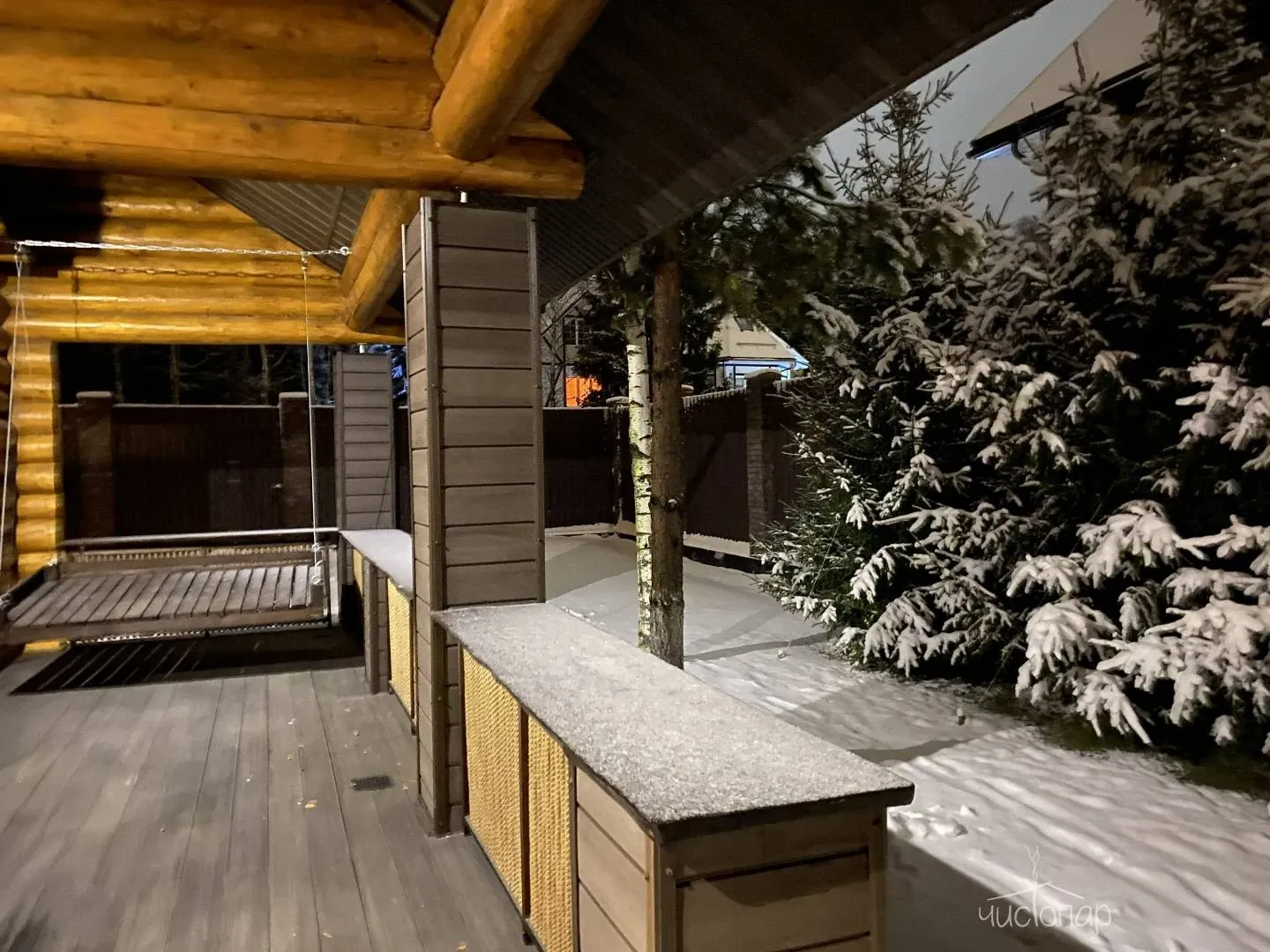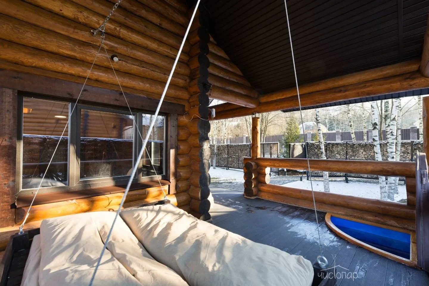 - Веранда с сенными качелями