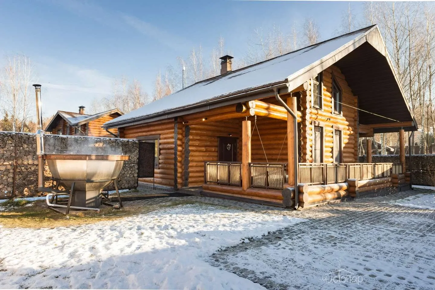 В нашей деревне шесть домов из сруба с парными, внутренними двориками и купелями. У нас вы найдёте дом с русской парной на любой вкус — «по-чёрному», «по-серому», «по-белому», «поморский чан» и купель с джакузи на дровах! А так же вы получите весь перечень банных услуг от парения и помывки, и до пилинга и укутывания.