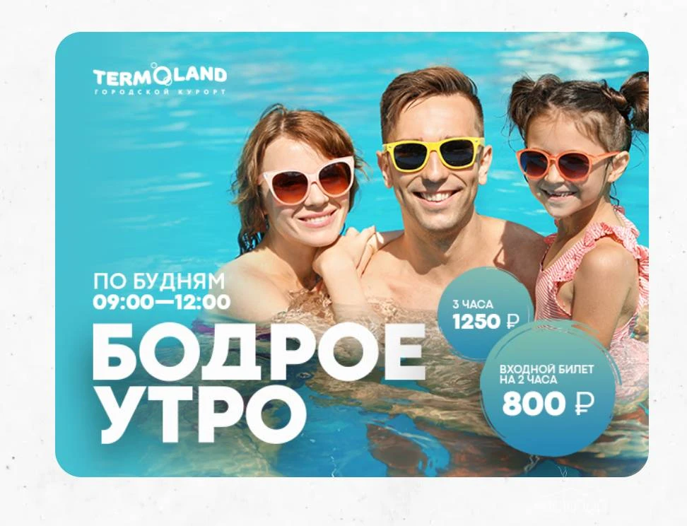 С 9:00 до 12:00 по будням Вы можете купить билет в Termoland на 2 часа за 800 рублей или 3 часа за 1250 рублей