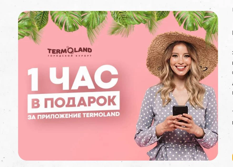 Очень радует Термоленд, нравится у них бывать, каждый раз уезжаю с морем впечатлений и фоток. Отдыхала здесь с подругами, пару раз ездила с парнем. Ему, кстати, тоже очень понравилось! Я даже не знаю, кому такое может не понравится, потому что здесь есть все что душе угодно. Но, конечно, сначала надо побывать, просто по описанию не представить того масштаба! Я когда первый раз приехала то была очень впечатлена! Джакузи с минеральной водой мне понравилась, а еще то, что я особо люблю Травяную сауну. Запах там просто нереальный! И дышишь травами и тело паришь – красота! Бассейн после бани это тоже супер. Волшебные ощущения!!! Водичка всегда чистая. В будни с утра людей поменьше, но не всегда выходит взять выходной на это время. В выходные народу конечно прилично, но это не портит мой отдых. В любом случае лучше Термоленда сейчас ничего нет. За эти деньги получить такой уровень сервиса – просто больше не найти. Поэтому одозначно плюсую за Термоленд и рекомендую от души!!