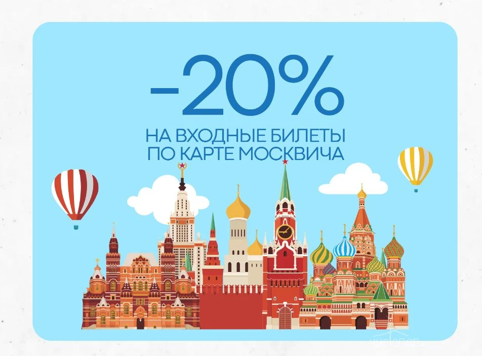 Обладателям социальной карты москвича предоставляется скидка 20% на разовые входные билеты по категории «Стандарт» в любой день недели и на любое время! Для получения скидки нужно просто предъявить карту москвича на кассах комплекса.