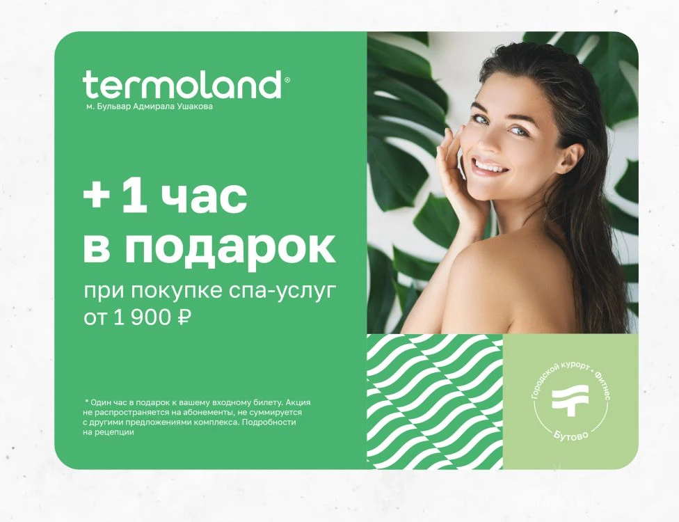 Гостю, оплатившему спа-услуги на сумму от 1900 руб., предоставляется 1 час дополнительного времени посещения комплекса.