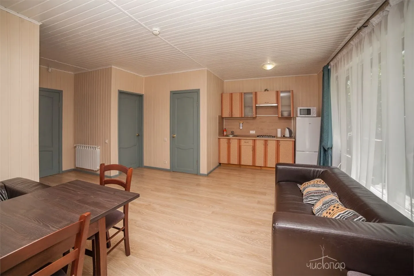 Двухэтажный современный коттедж с центральным отоплением, оборудованный уютной мангальной зоной для барбекю. Возможно размещение 6 гостей + 2 детей на дополнительных местах.