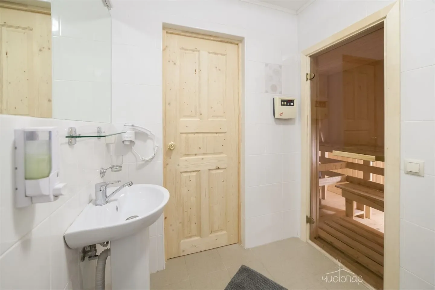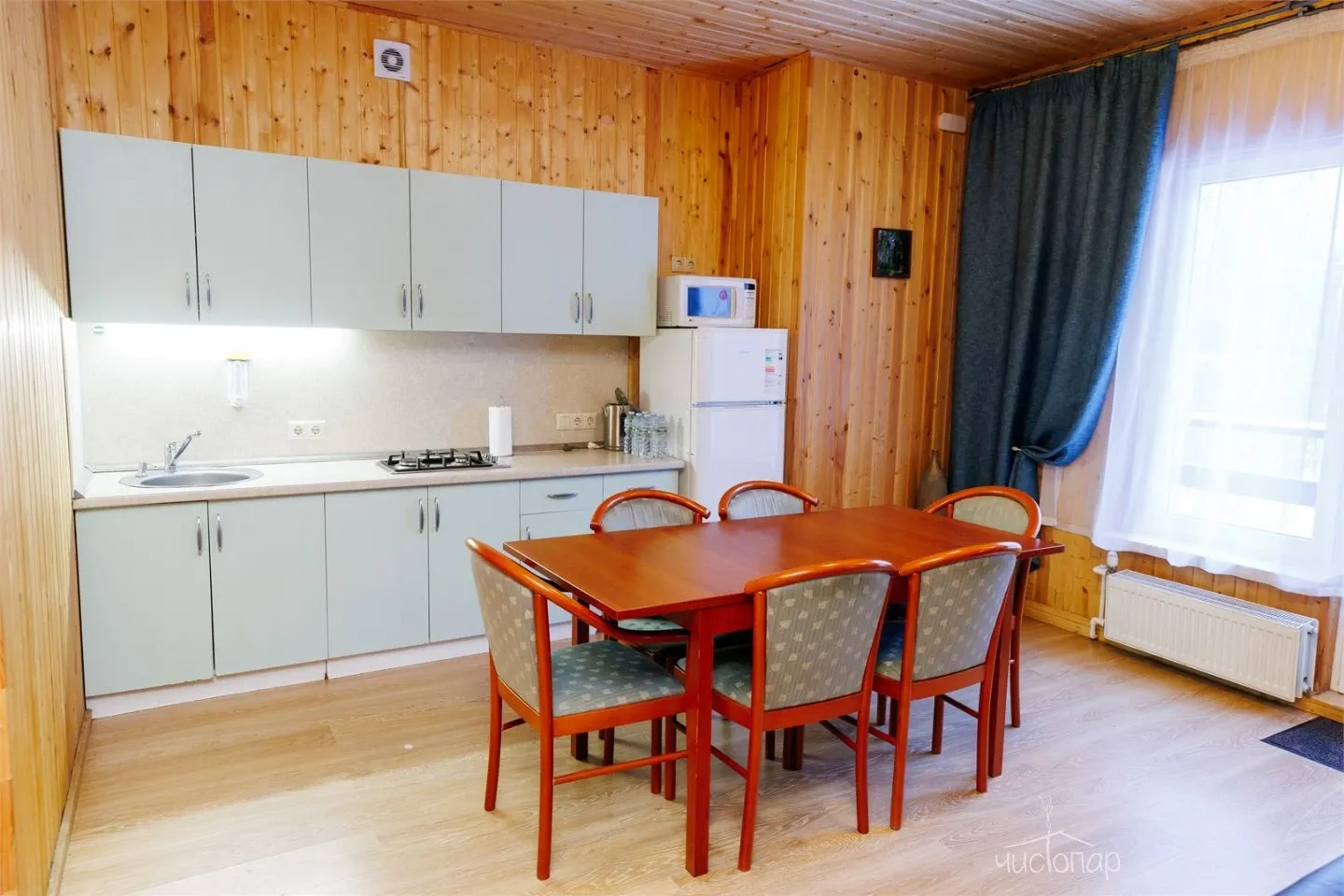 В коттедже: Гостиная с набором мягкой мебели и кухней, газовая плита. Два LCD TV 2 спальни: одна с двуспальной кроватью и одна с двумя односпальными кроватями; Душевая комната с сауной на 1 этаже и душевая комната в комнате с двуспальной кроватью на 2 этаже.