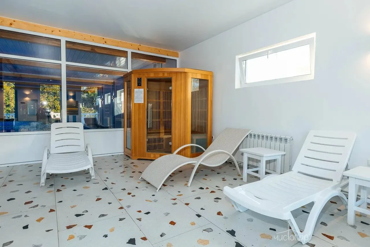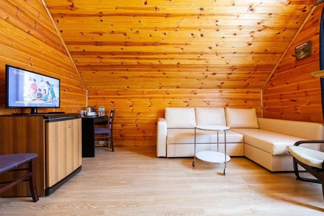 Коттедж Luxe c 2-мя спальнями и саунойВместимость до 6 мест. Один ребёнок до 4 лет — можно без отдельного спального места.