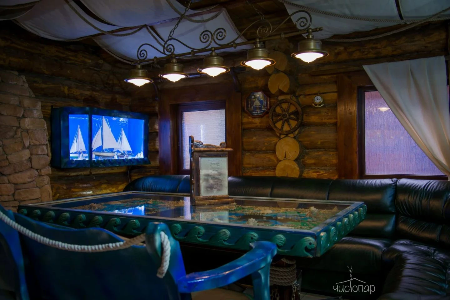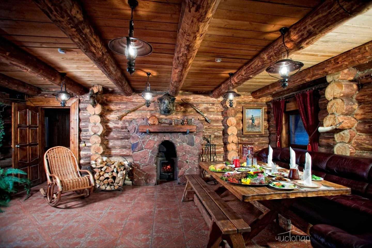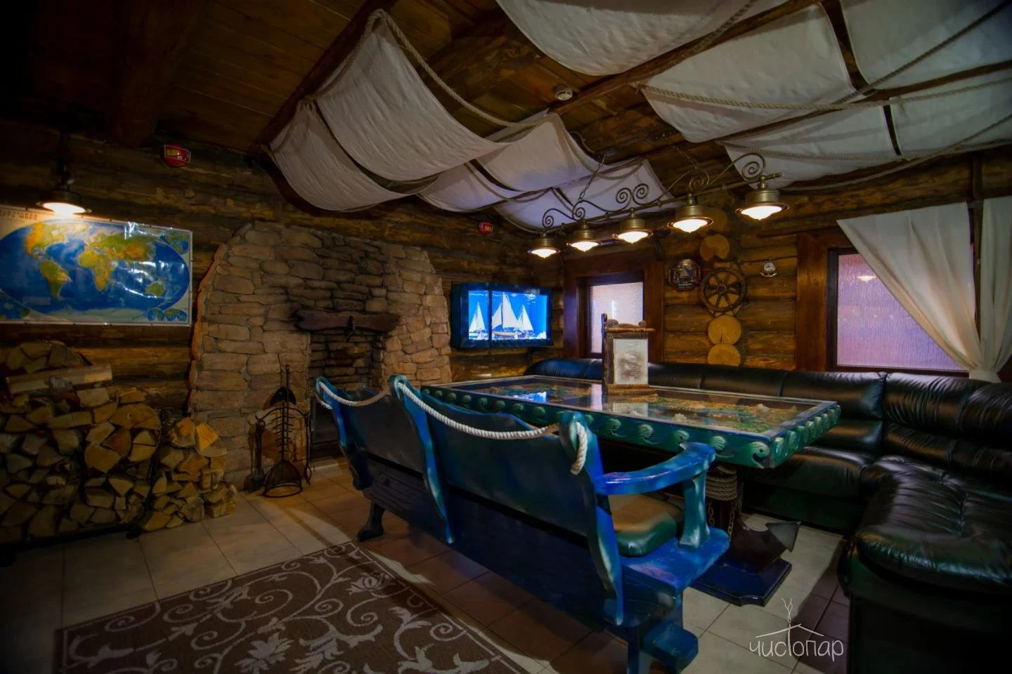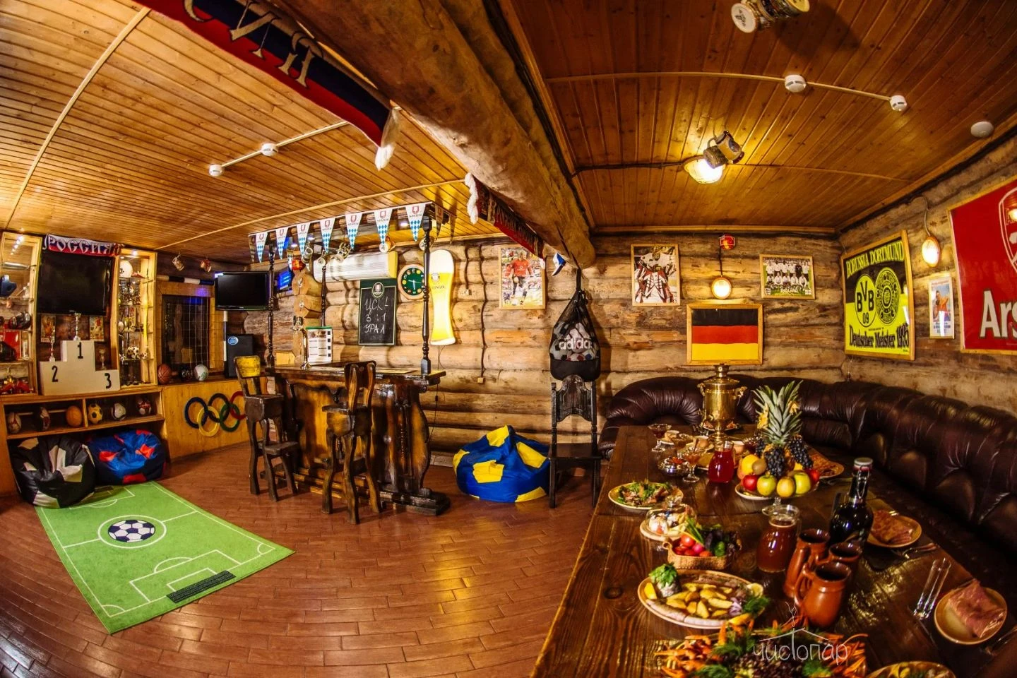 Весьма своеобразный стиль сруба «Штаб» покоряет гостей романтикой Второй Мировой войны. Обаяние суровых армейских будней не оставит равнодушными настоящих мужчин, поскольку переступив порог «Штаба» каждый чувствует себя героем победоносных сражений. Каждая комната здесь хранит военную символику советских времен, создавая в центре Москвы островок боевой славы, нетронутый временем. Здесь можно прекрасно отдохнуть в узком мужском кругу или с размахом отметить любое торжество в большой компании.Читать далее