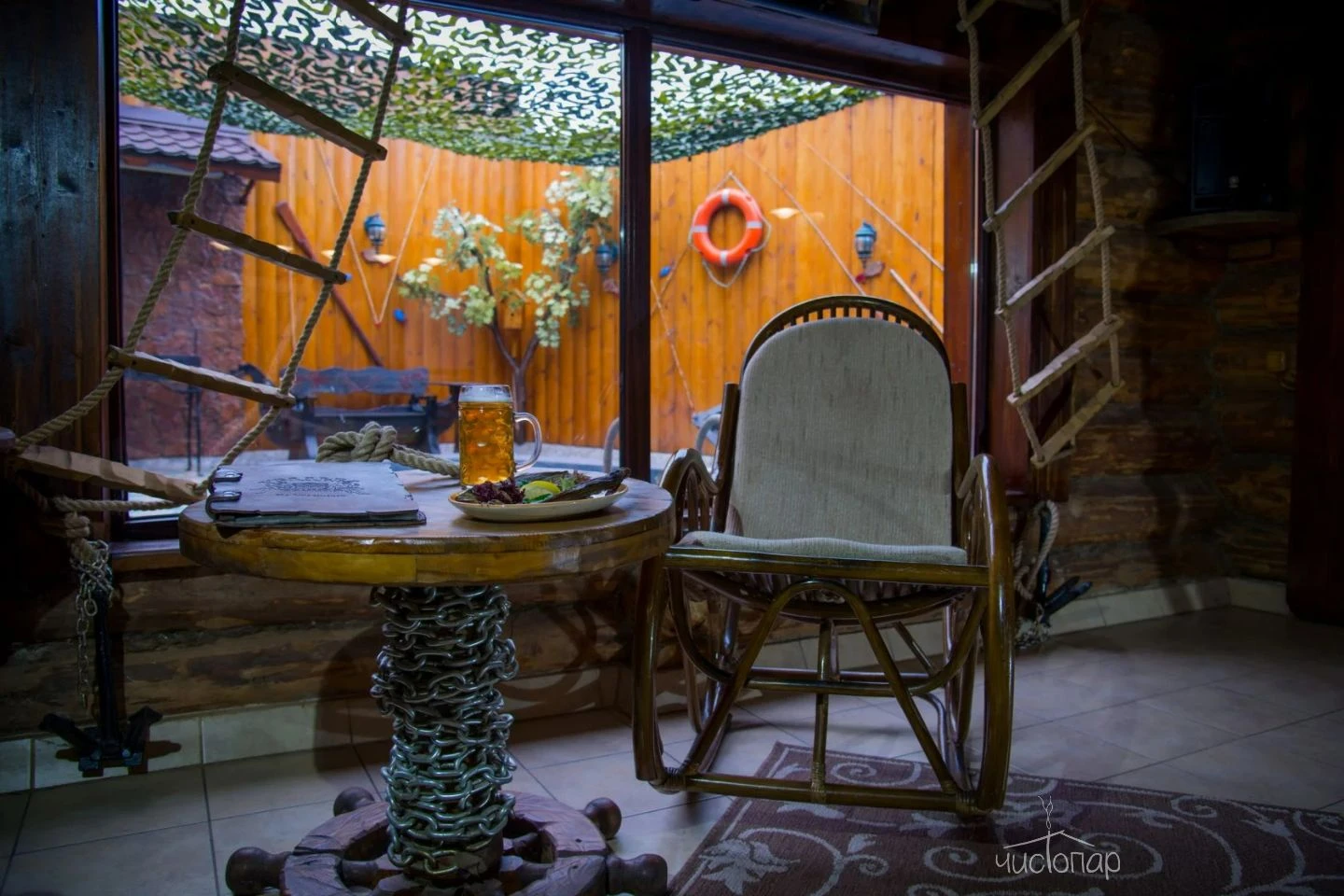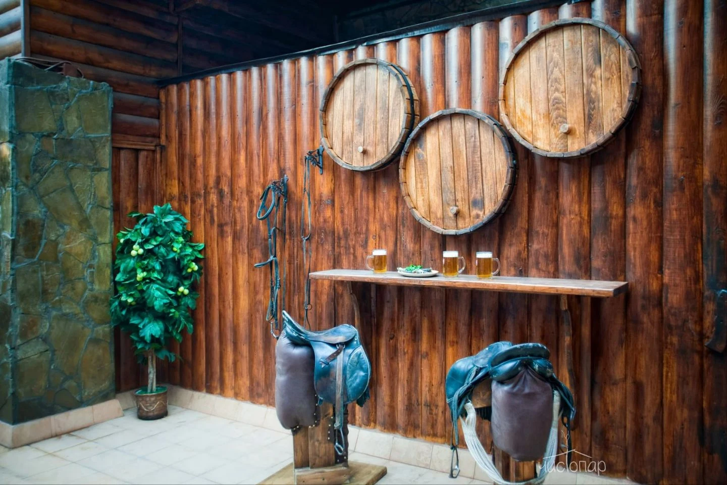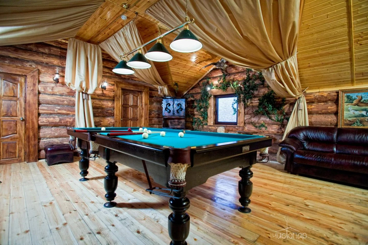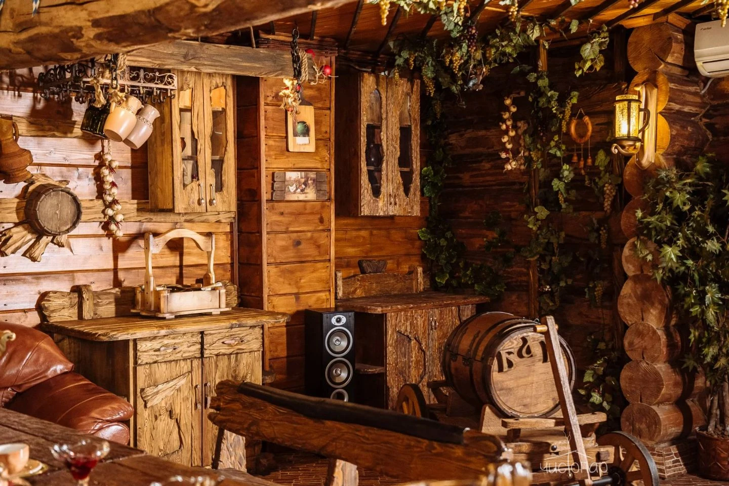 Весьма своеобразный стиль сруба «Штаб» покоряет гостей романтикой Второй Мировой войны. Обаяние суровых армейских будней не оставит равнодушными настоящих мужчин, поскольку переступив порог «Штаба» каждый чувствует себя героем победоносных сражений. Каждая комната здесь хранит военную символику советских времен, создавая в центре Москвы островок боевой славы, нетронутый временем. Здесь можно прекрасно отдохнуть в узком мужском кругу или с размахом отметить любое торжество в большой компании.Читать далее