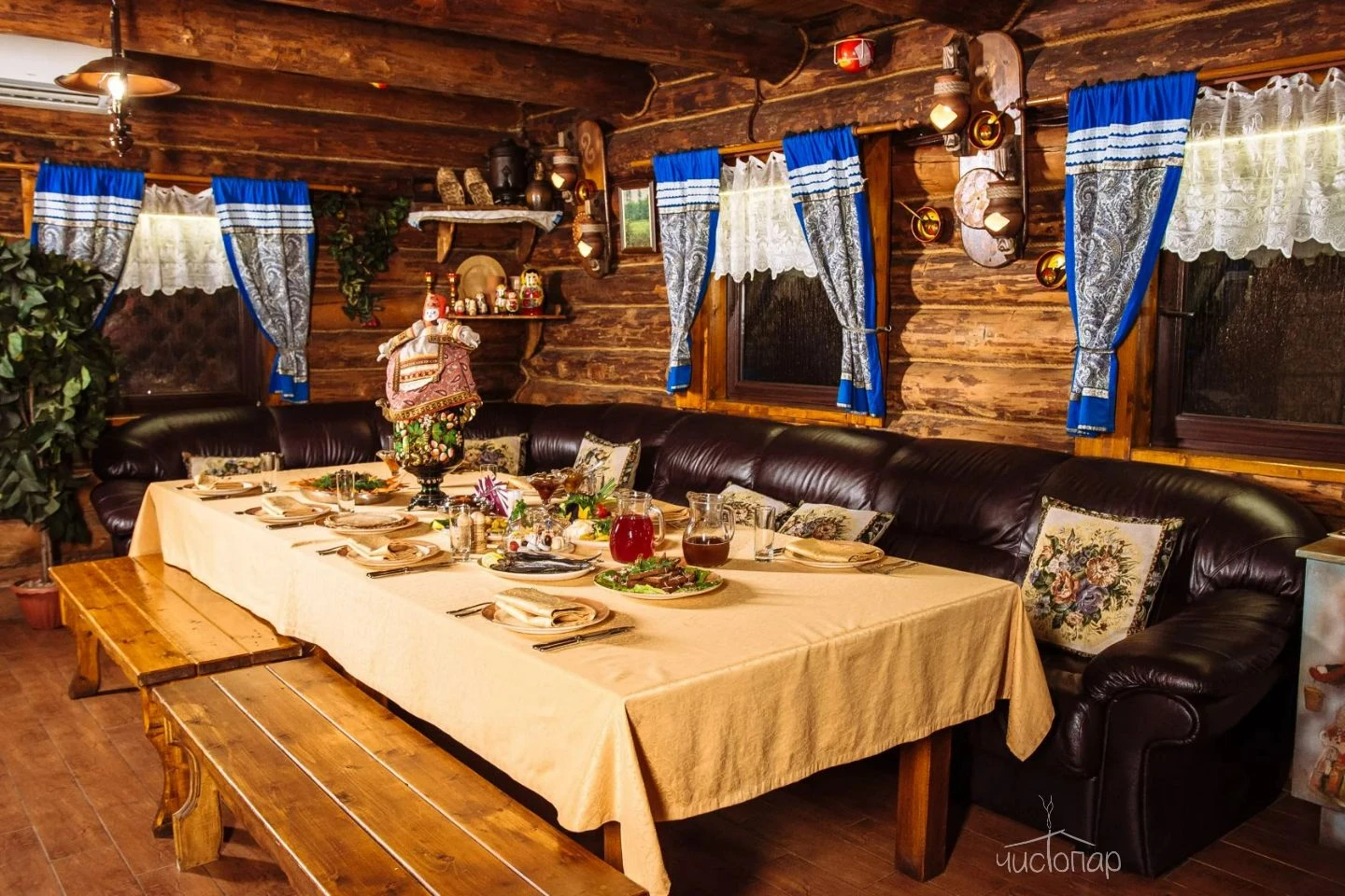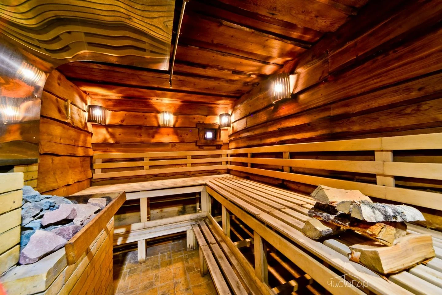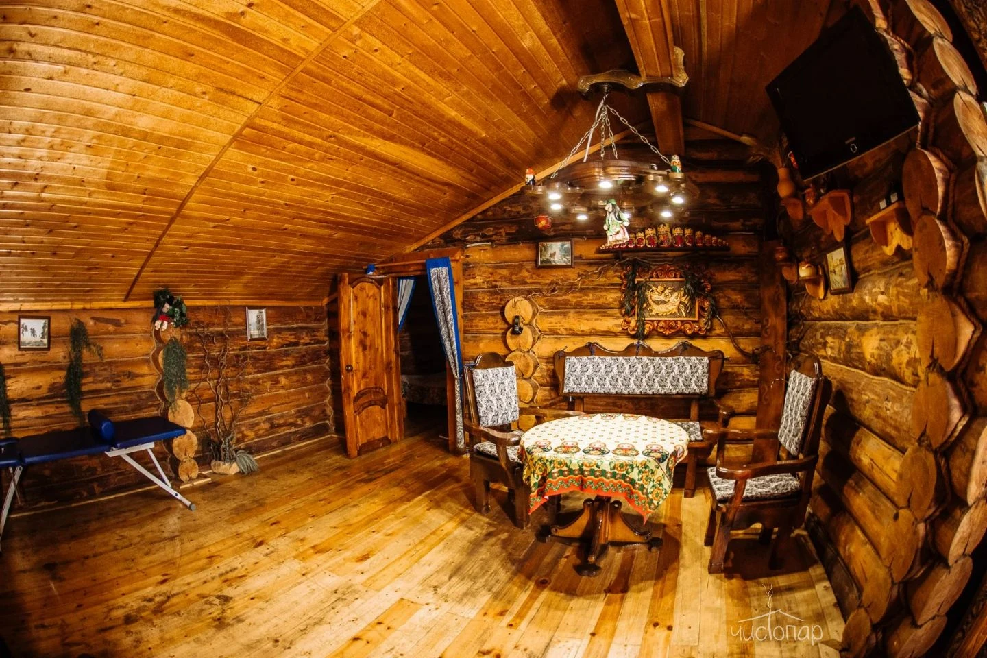 Открывая дверь в сруб «Богатырский», Вы наблюдаете, как на Ваших глазах оживают былины о великих русских богатырях Илье Муромце, Добрыне Никитиче и Алеше Поповиче. Нарочито грубо обработанные стены, массивная мебель, проста и изящество интерьеров создают впечатление невидимого присутствия былинных героев, создавая непередаваемую сказочную атмосферу. Испробовать на себе древние процедуры парения, открыть тайну богатырской силы, окатившись холодной водой после парной бани, а при желании понежиться в огромной джакузи – все это и многое другое Вы найдете здесь. Сруб «Богатырский» Усадьбы Банной подарит Вам богатырское здоровье и отличный отдых!Читать далее