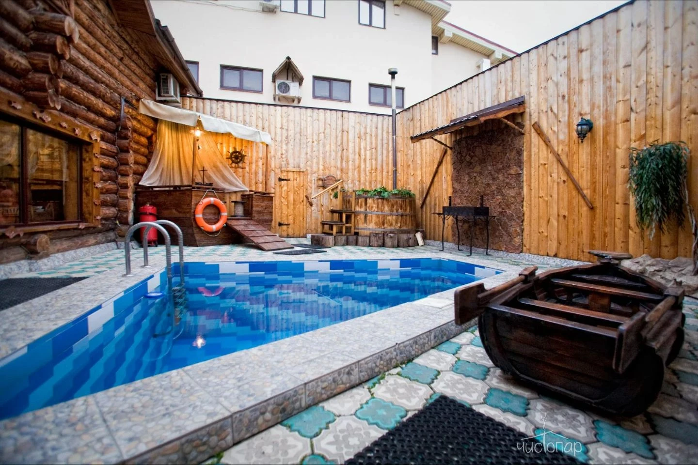 Сруб «Матрёшкин дом» окутает Вас домашним теплом и уютом, буйство красок в ярком оформлении сруба напомнит Вам о весне в деревне. Оригинальные мотивы, орнаменты в древнерусском стиле создадут атмосферу комфорта, уединенности, яркие матрешки в интерьерах поднимут настроение после трудовых будней. Вас ждет жаркая парная с березовыми, пихтовыми, дубовыми вениками, бассейном с прохладной водой во внутреннем дворике и сеновалом с душистым сеном. А в комнатах отдыха Вы найдете самую современную технику и развлечения для любой компании.Читать далее