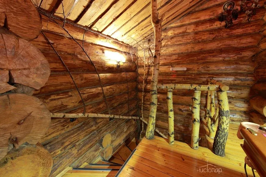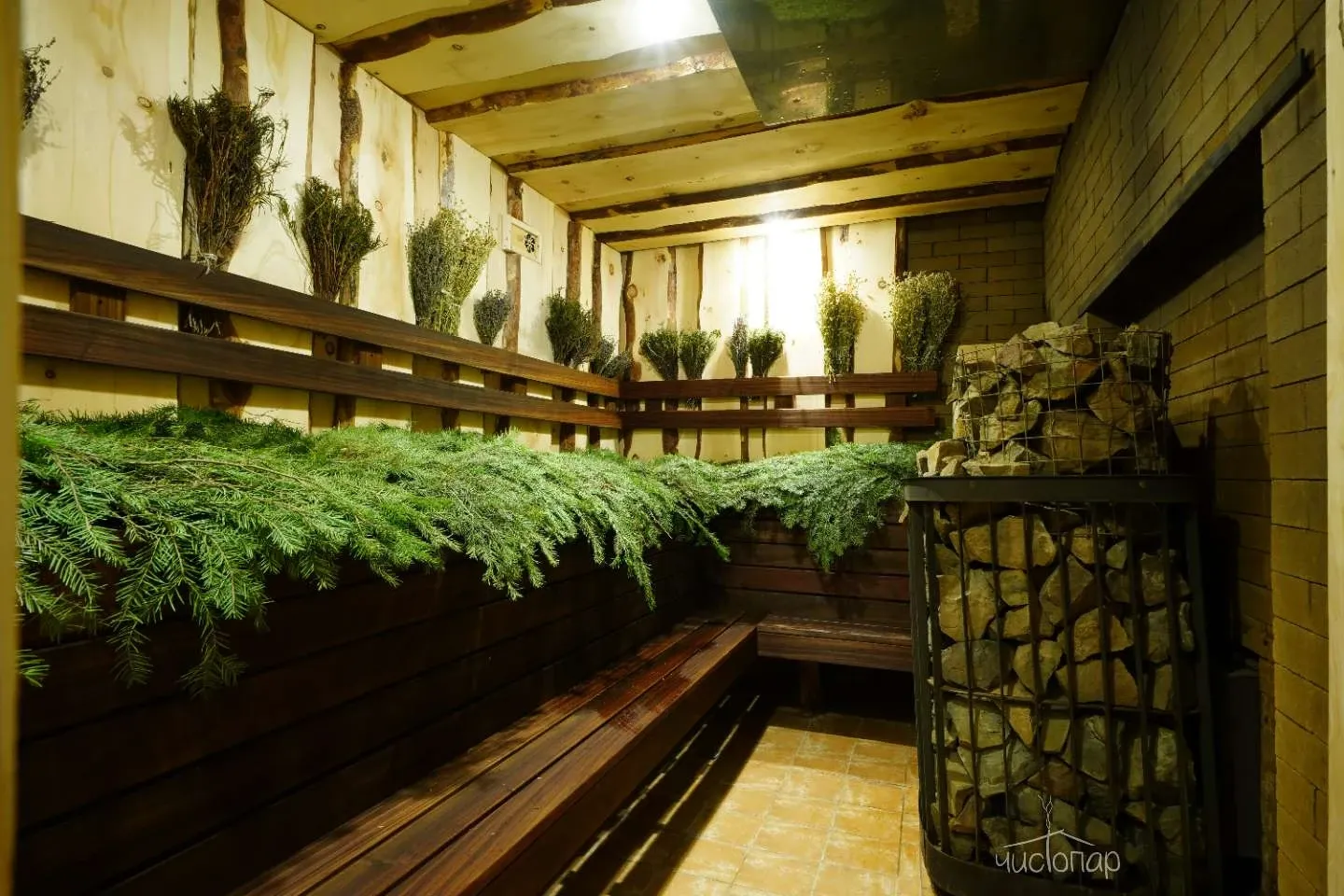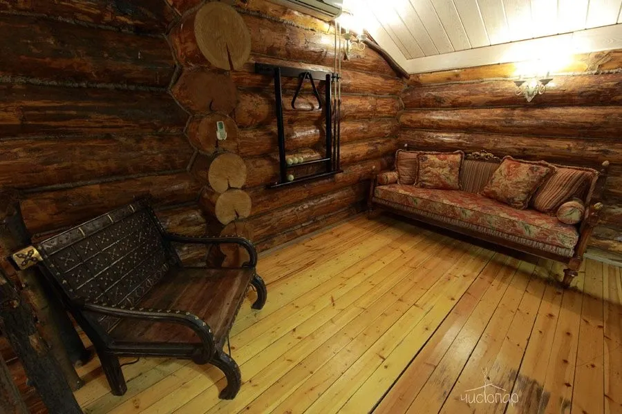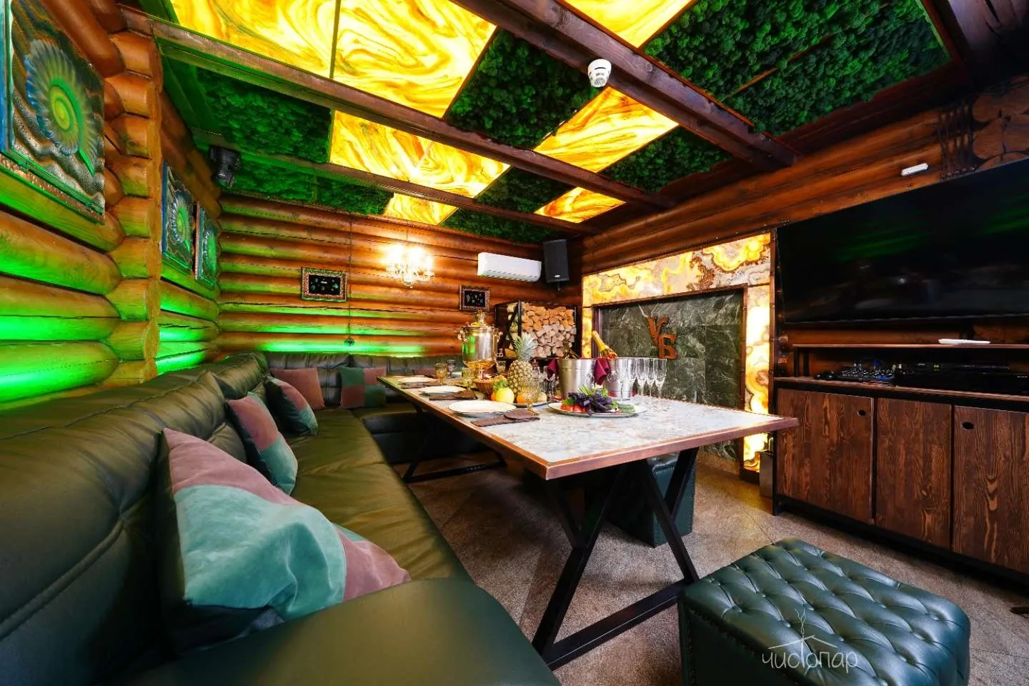 Внутри двухэтажного сруба находится классическая парная на дровах и просторная гостиная, где можно понежиться на уютном кожаном диване, а также устроить настоящее застолье для друзей, знакомых, коллег и членов семьи. Вкусные блюда и напитки домашней кухни вы можете заказать прямо в апартаменты по внутреннему телефону. В банном домике также расположены две комнаты отдыха, предназначенные для релаксации, сна и массажа в атмосфере полной безмятежности.Читать далее
