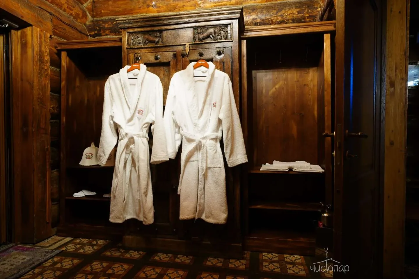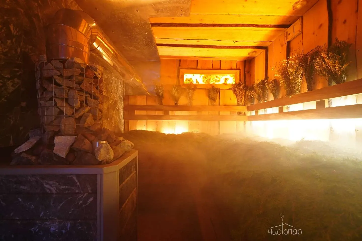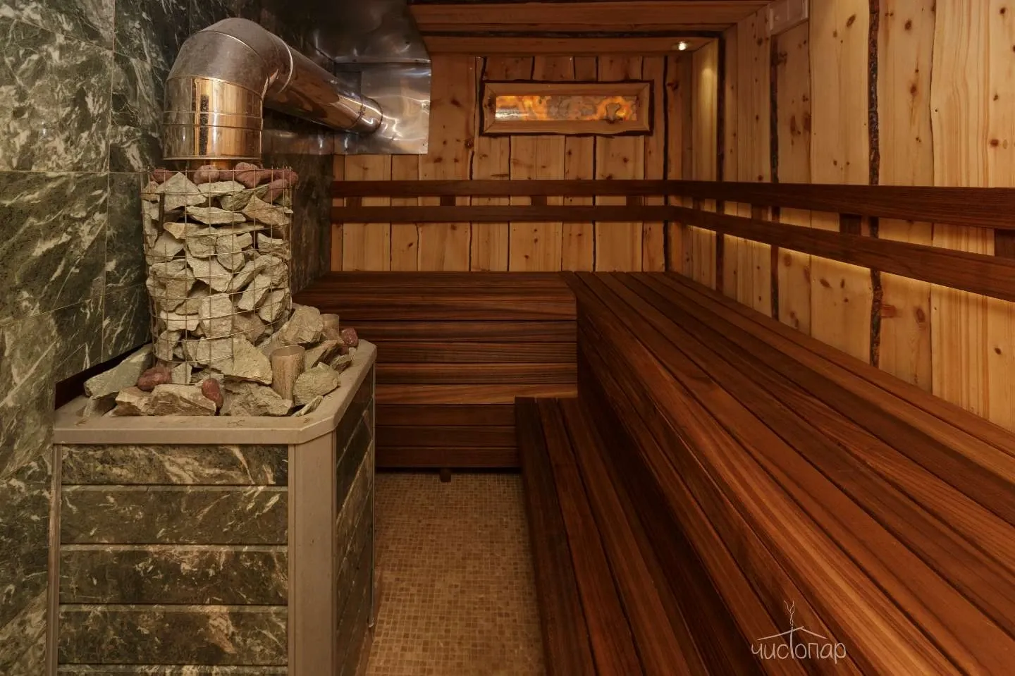 Внутри двухэтажного сруба находится классическая парная на дровах и просторная гостиная, где можно понежиться на уютном кожаном диване, а также устроить настоящее застолье для друзей, знакомых, коллег и членов семьи. Вкусные блюда и напитки домашней кухни вы можете заказать прямо в апартаменты по внутреннему телефону. В банном домике также расположены две комнаты отдыха, предназначенные для релаксации, сна и массажа в атмосфере полной безмятежности.Читать далее