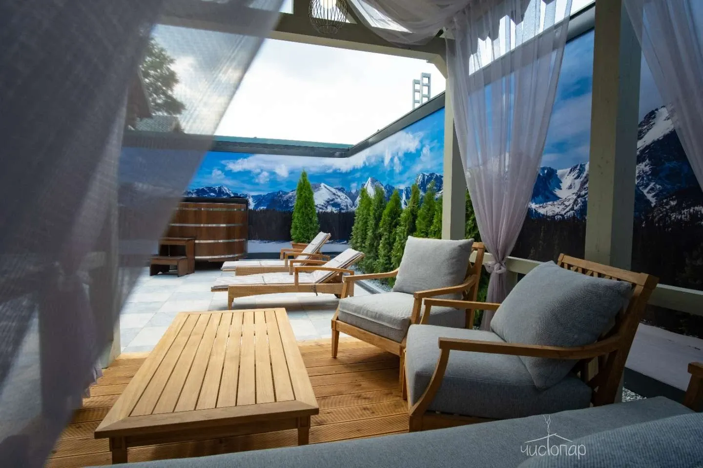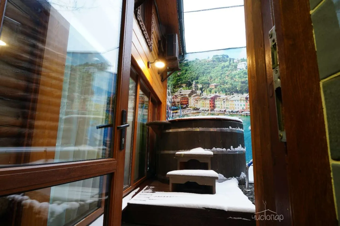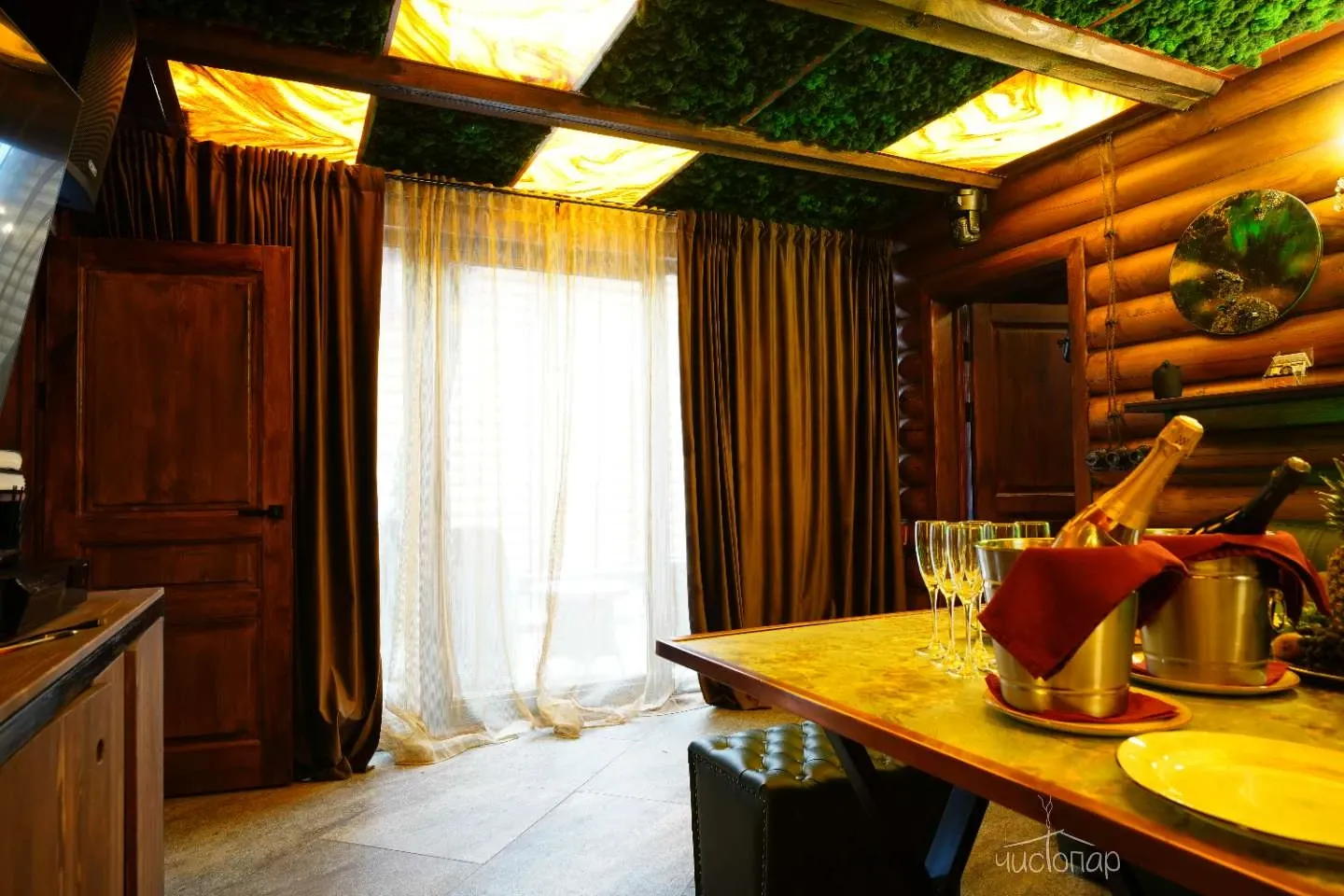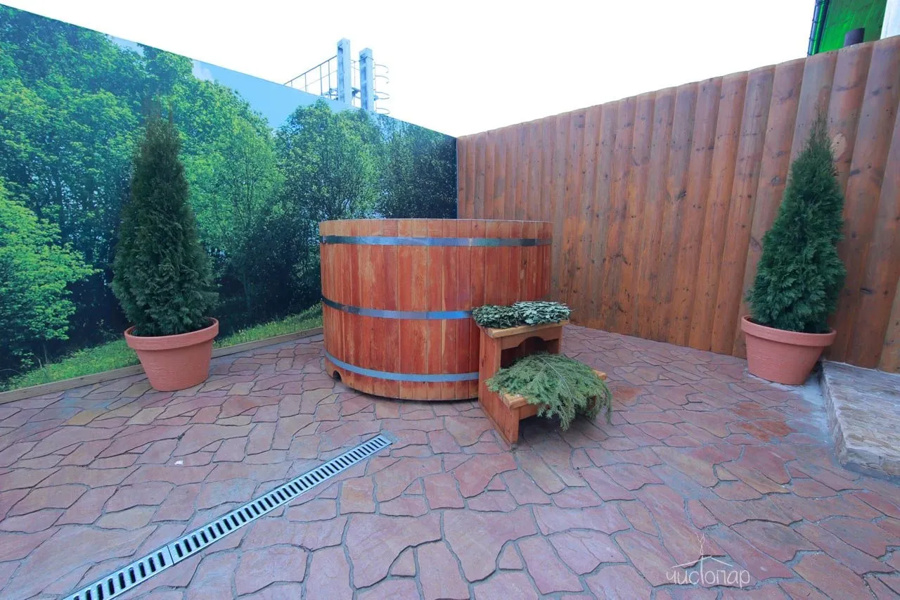 Апартаменты "Зимние"Сруб «Зимний» дает уникальную возможность оказаться в лесном бревенчатом домике без надобности покидать пределы столицы. Здесь есть все удовольствия, которые ассоциируются с зимним загородным отдыхом. В перерывах между посещением жаркой парной вы можете выбежать во внутренний дворик и окунуться в специальную бочку, установленную под открытым небом. Подобный полезный контраст закаляет тело, улучшает кровообращение и дает омолаживающий эффект.