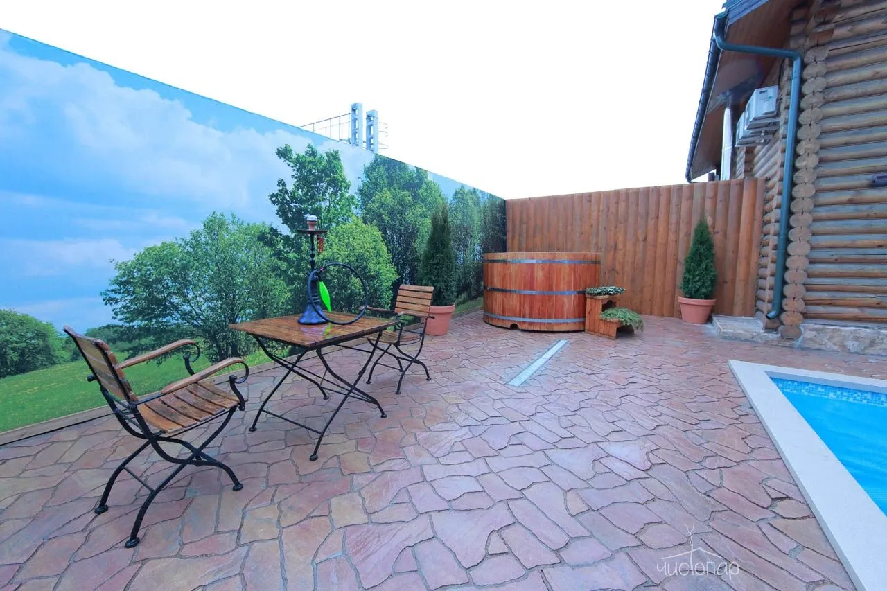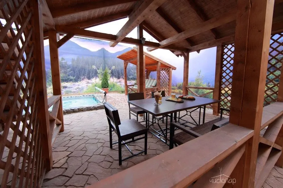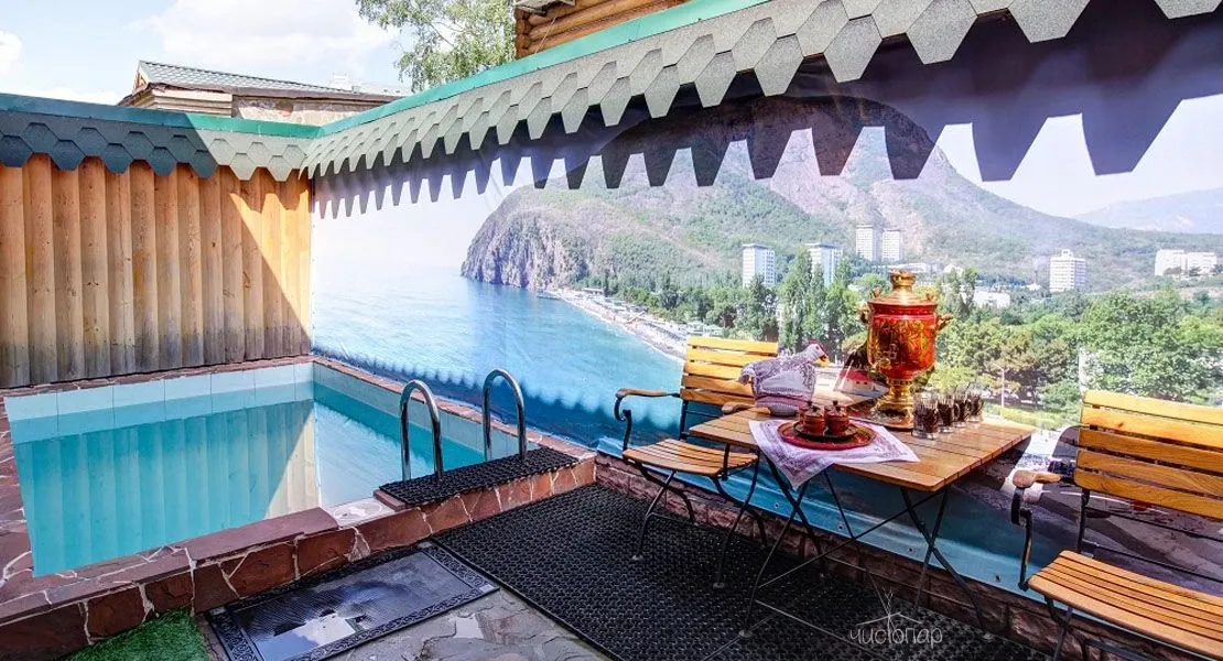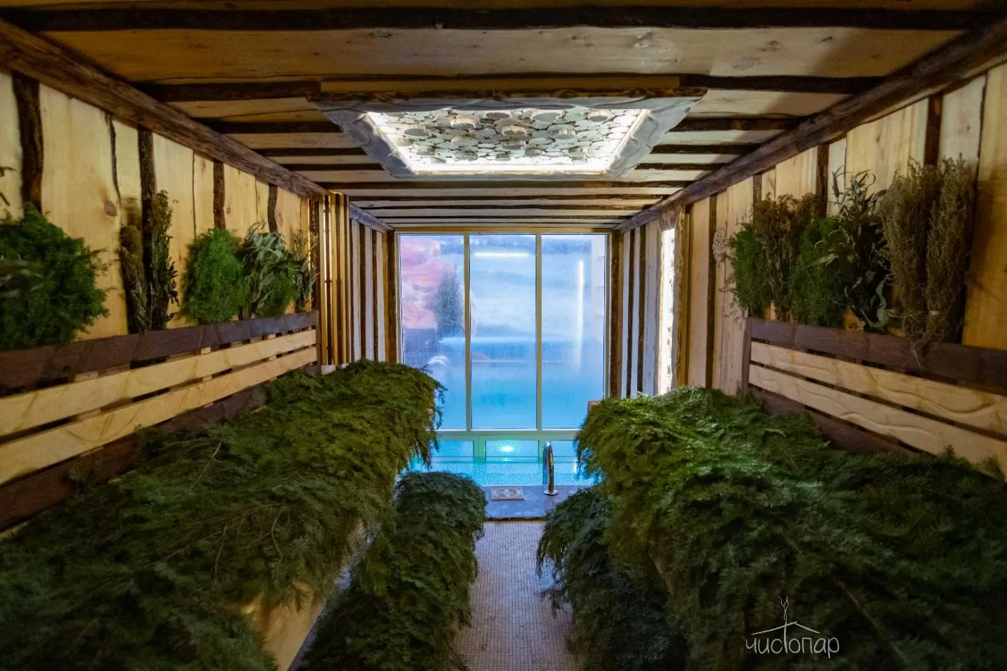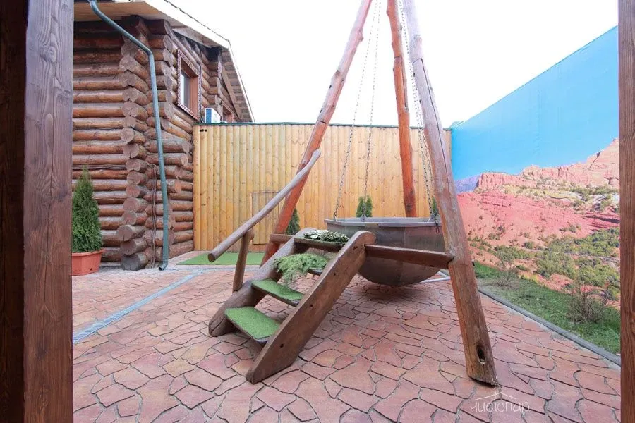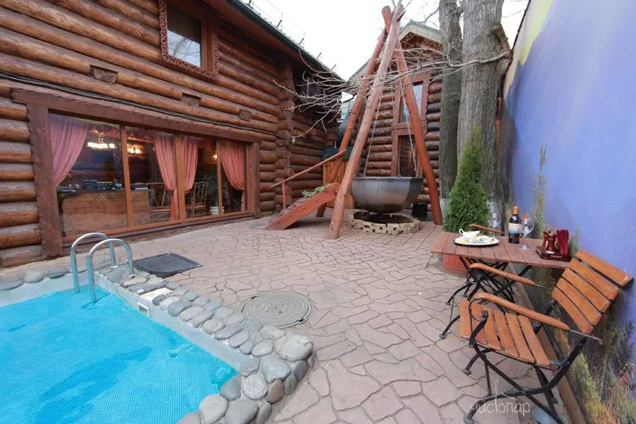 11 срубов вместимостью от 8 до 15 человек полностью автономны, оборудованы собственными саунами, парными, бассейнами и бочками-купелями;