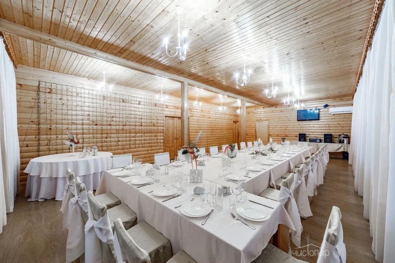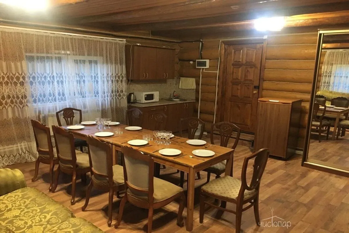 Размещение предложено в двухэтажных деревянных коттеджах-срубах с просторными залами, душами, санузлами, мебелью и техникой.
