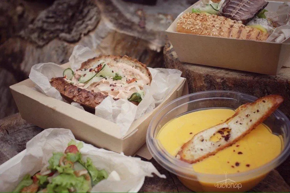 В усадьбе есть двухэтажное кафе с двумя залами: малым и большим, где можно заказать проведение банкета. Есть возможность заказать еду на вынос.