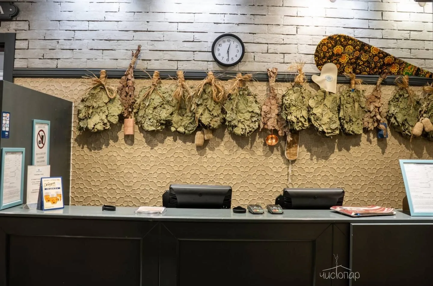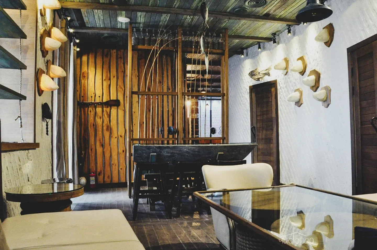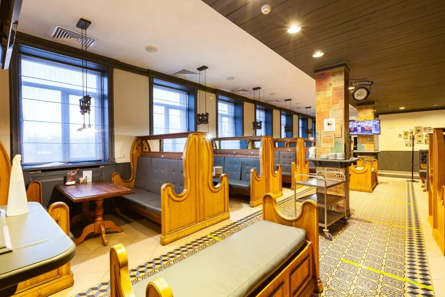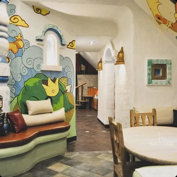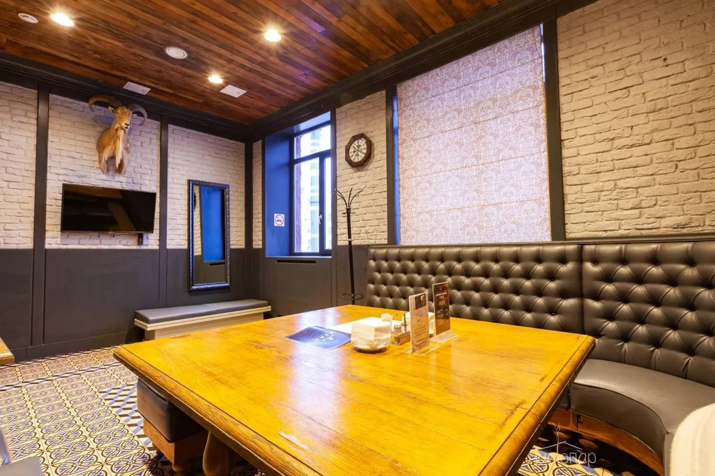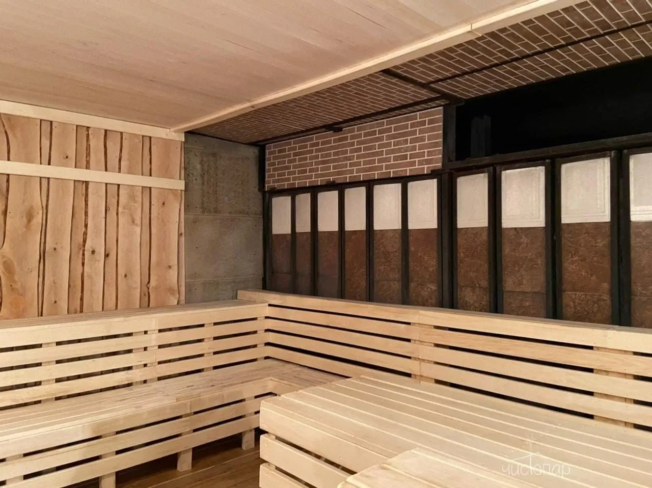 Напоминает маленький уютный домик в альпийских горах. Интерьер погружает нас в тёплую атмосферу спокойствия безмятежности. Мягкий приглушенный свет дарит умиротворение и помогает расслабиться.