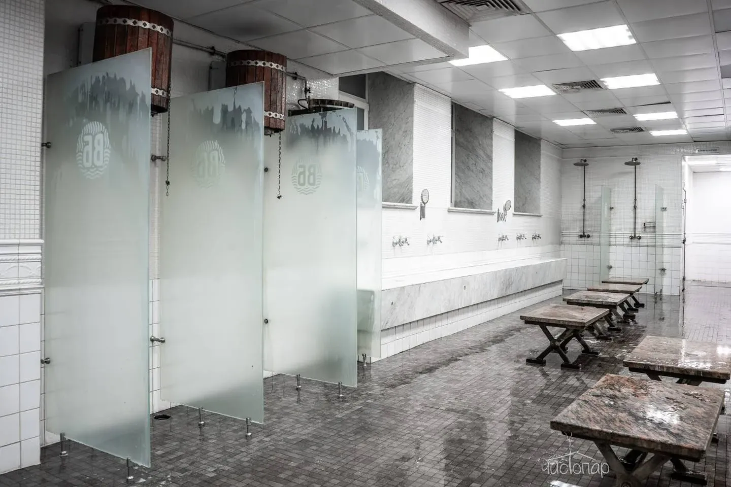 Начало самой масштабной реконструкции в истории баниВ 2007 году бани перешли в управление компании Gremm Group. Комплекс закрыли на 2 года и провели масштабную реконструкцию. На возрождение исторических бань было потрачено более $8 млн.На всех этажах были полностью заменены печи, однако, сводчатые потолки, традиционно обеспечивающие мягкий пар, решили не переделывать — сохранили.Также реконструировали интерьеры и все коммуникации, превратив советские бани в огромный многофункциональный SPA-комплекс с семейным рестораном и индивидуальными “банями мира”.