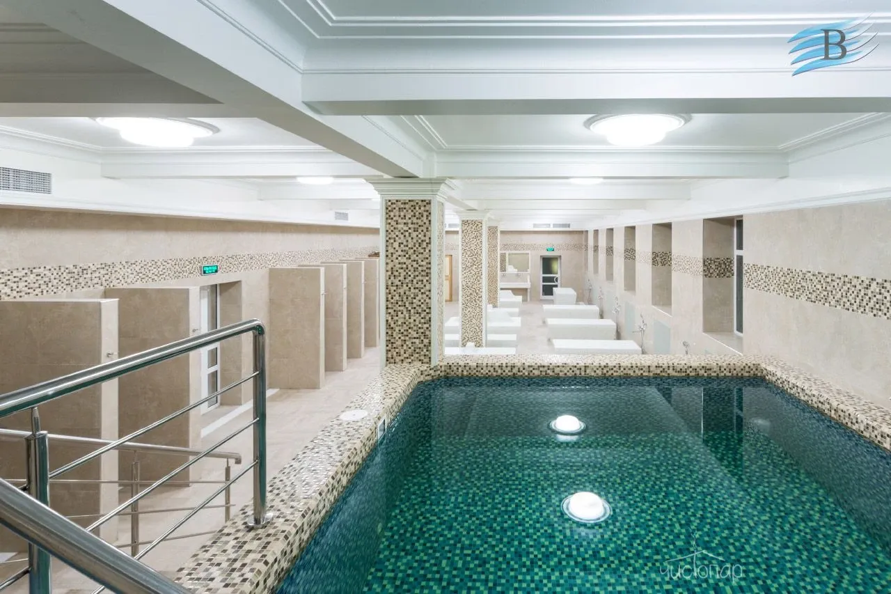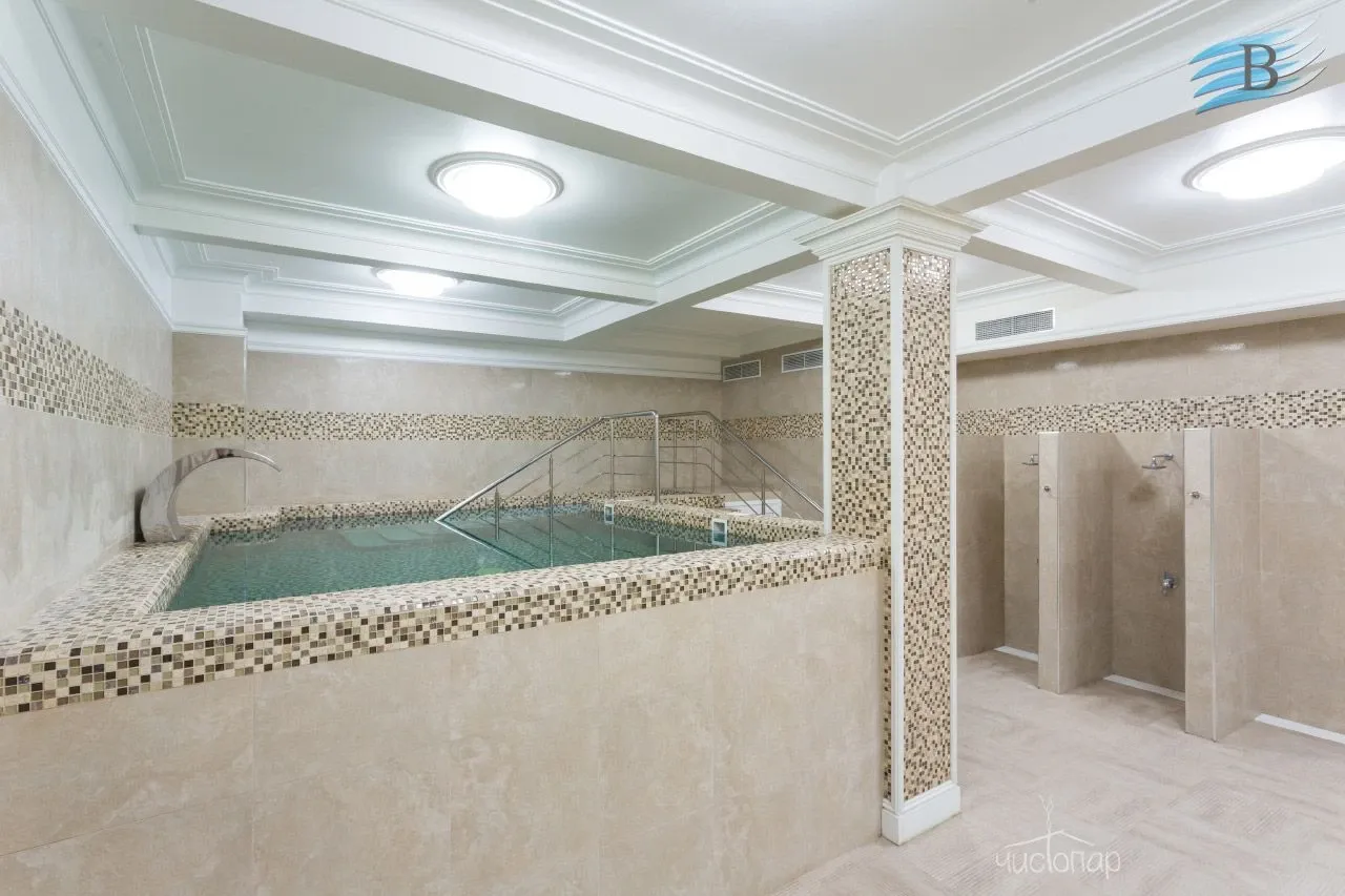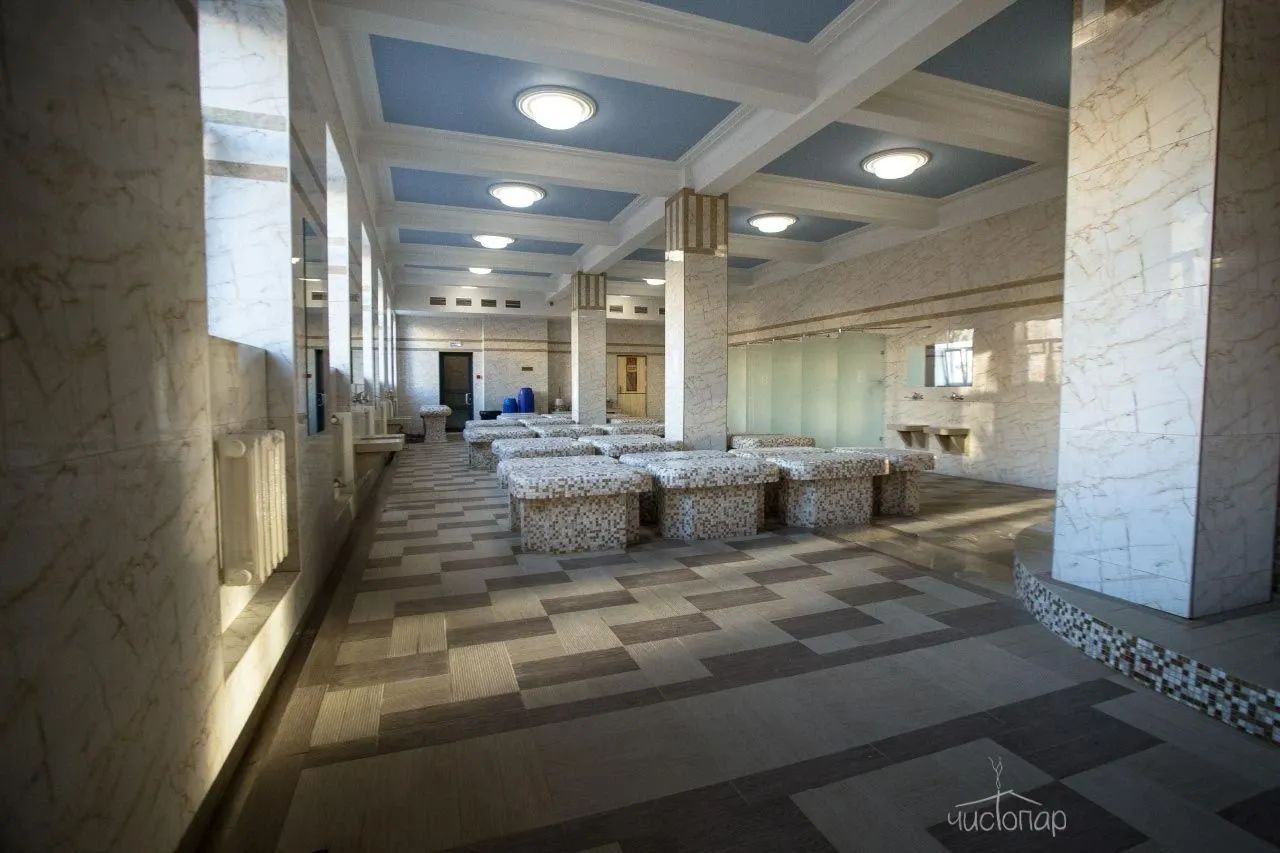 Общественные мужские и женские разряды, тематические залы с саунами, мини-сауны, бассейны, ресторан, отель и прачечная.