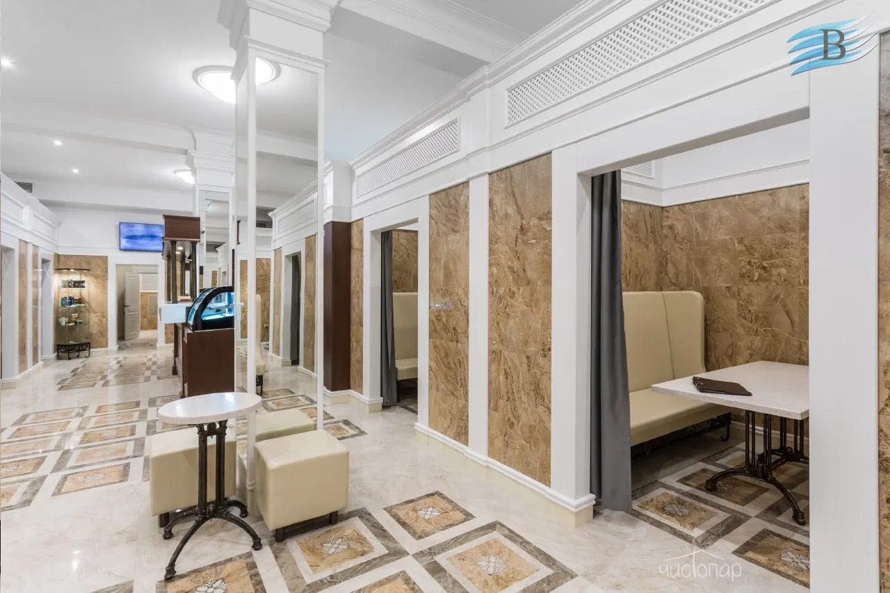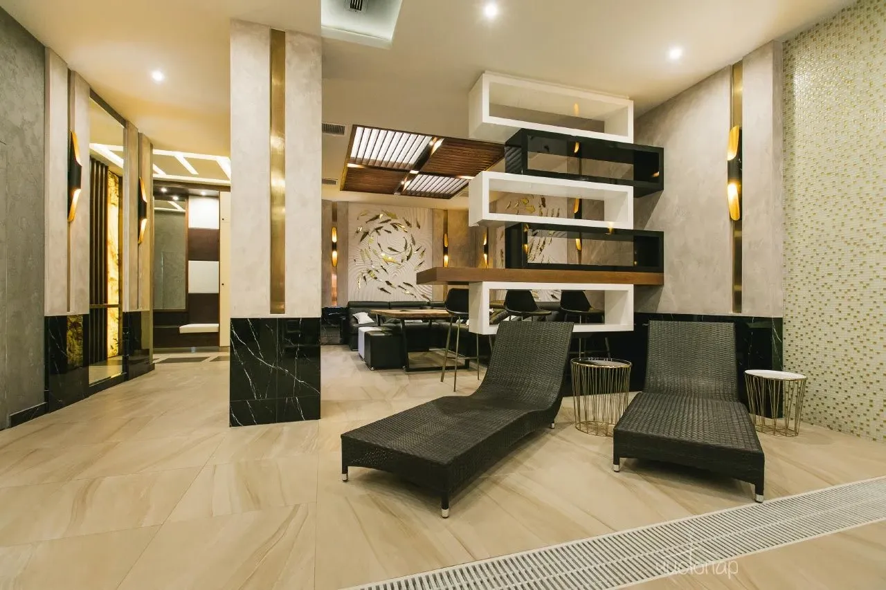 Помимо трех шикарных общественных разрядов, он включает в себя четыре отдельных тематических зала отдыха с саунами: "Минимализм", "Хамам", "Русский зал" и "Индиана", а также 5 мини-саун, предназначенных для тихого уединенного отдыха.