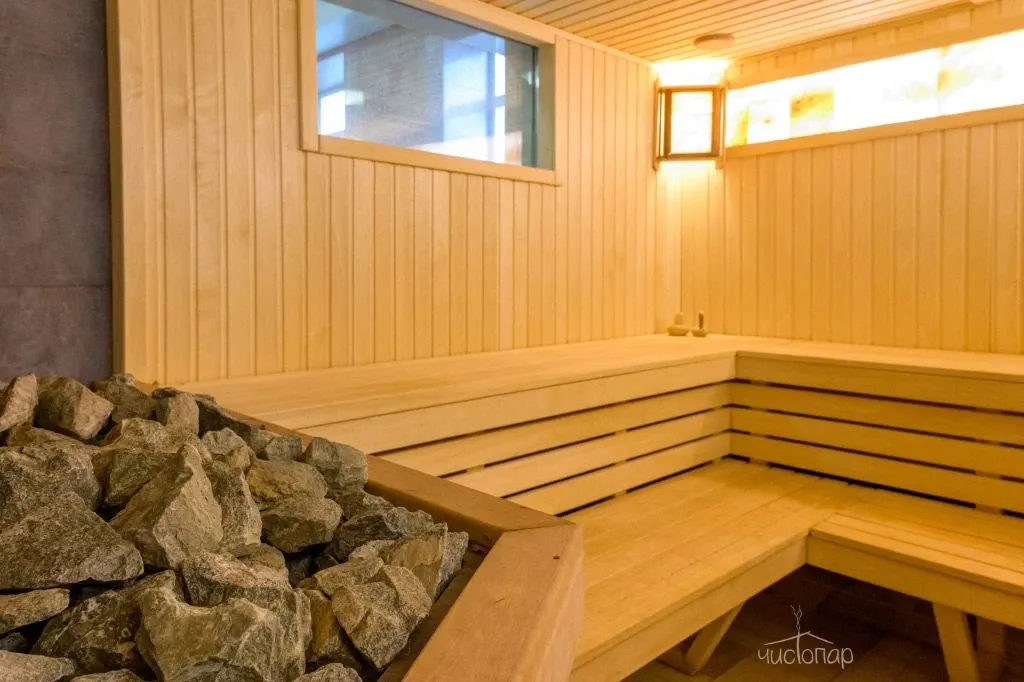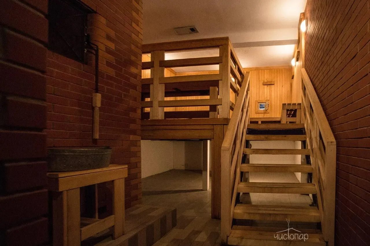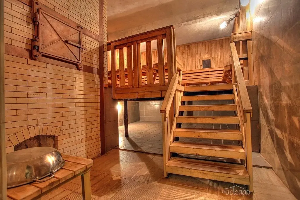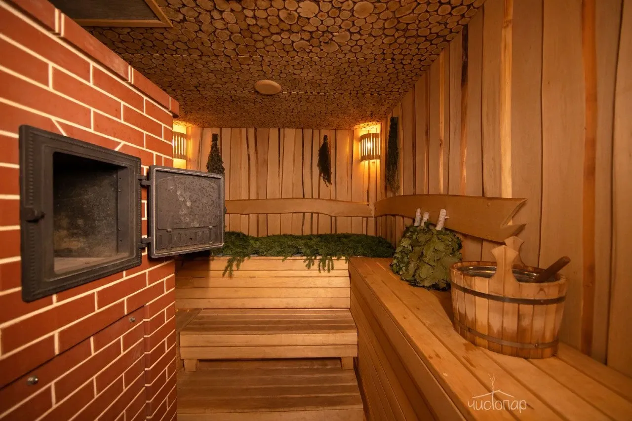 Парные оборудованы «правильной» печью, обеспечивающей комфортный и легкий пар, с березовыми и дубовыми вениками.